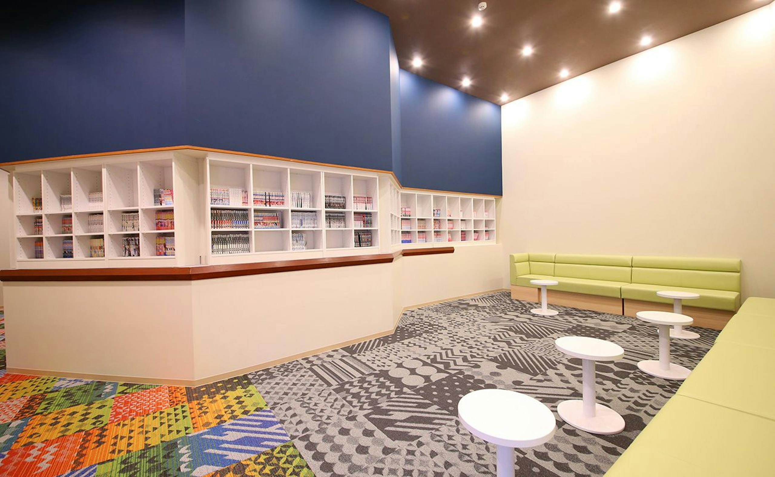 リラックススペースに約2500冊のマンガコーナーが設置され、漫画読み放題することができるホテルです。