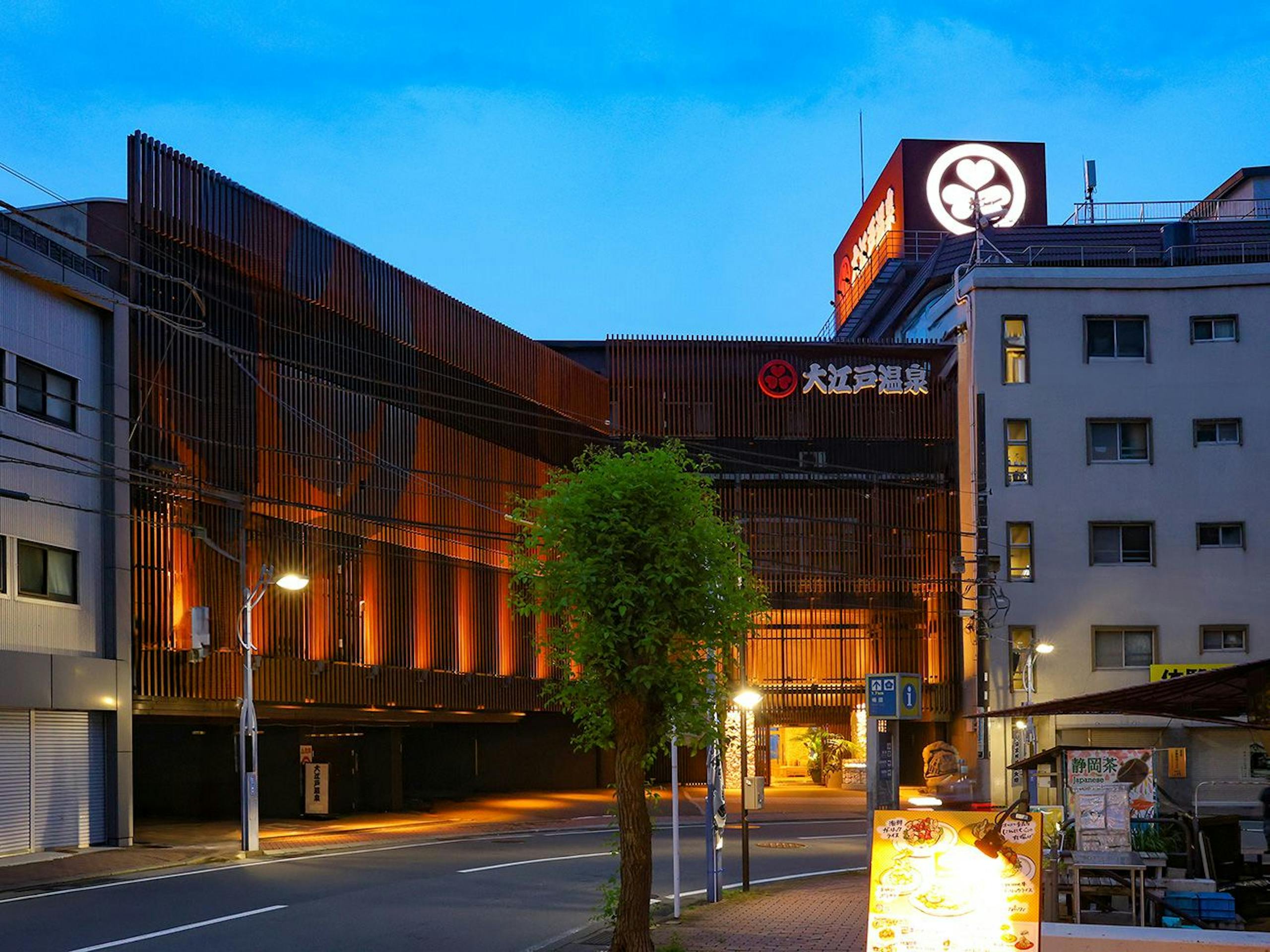 大江戸温泉物語Premium あたみは駅前商店街から徒歩約7分と、温泉街の一角に佇んでます。