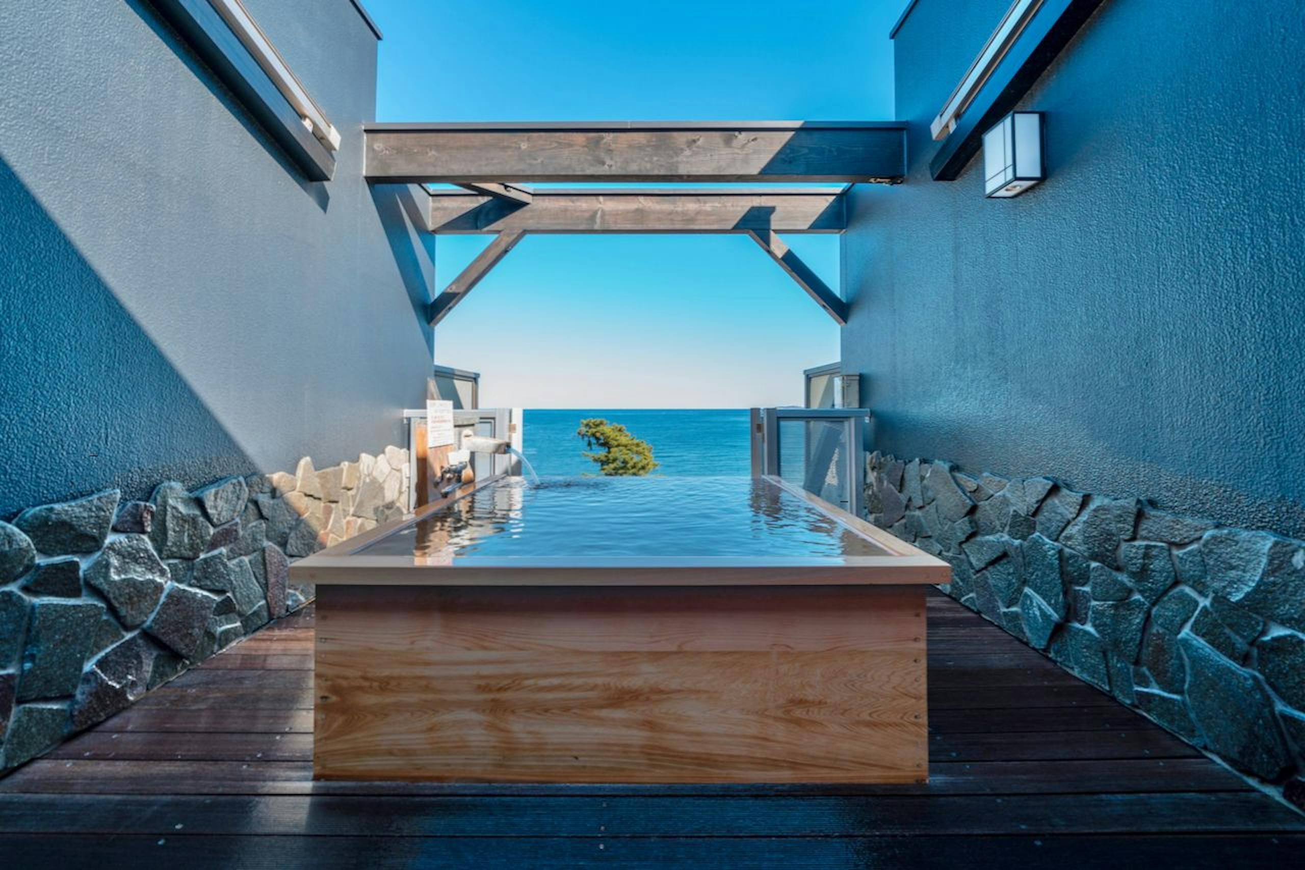 客室は和室と洋室から選べ、温泉は海と山と街並みを眺める大浴場や露天風呂で、湯浴みすることができます。