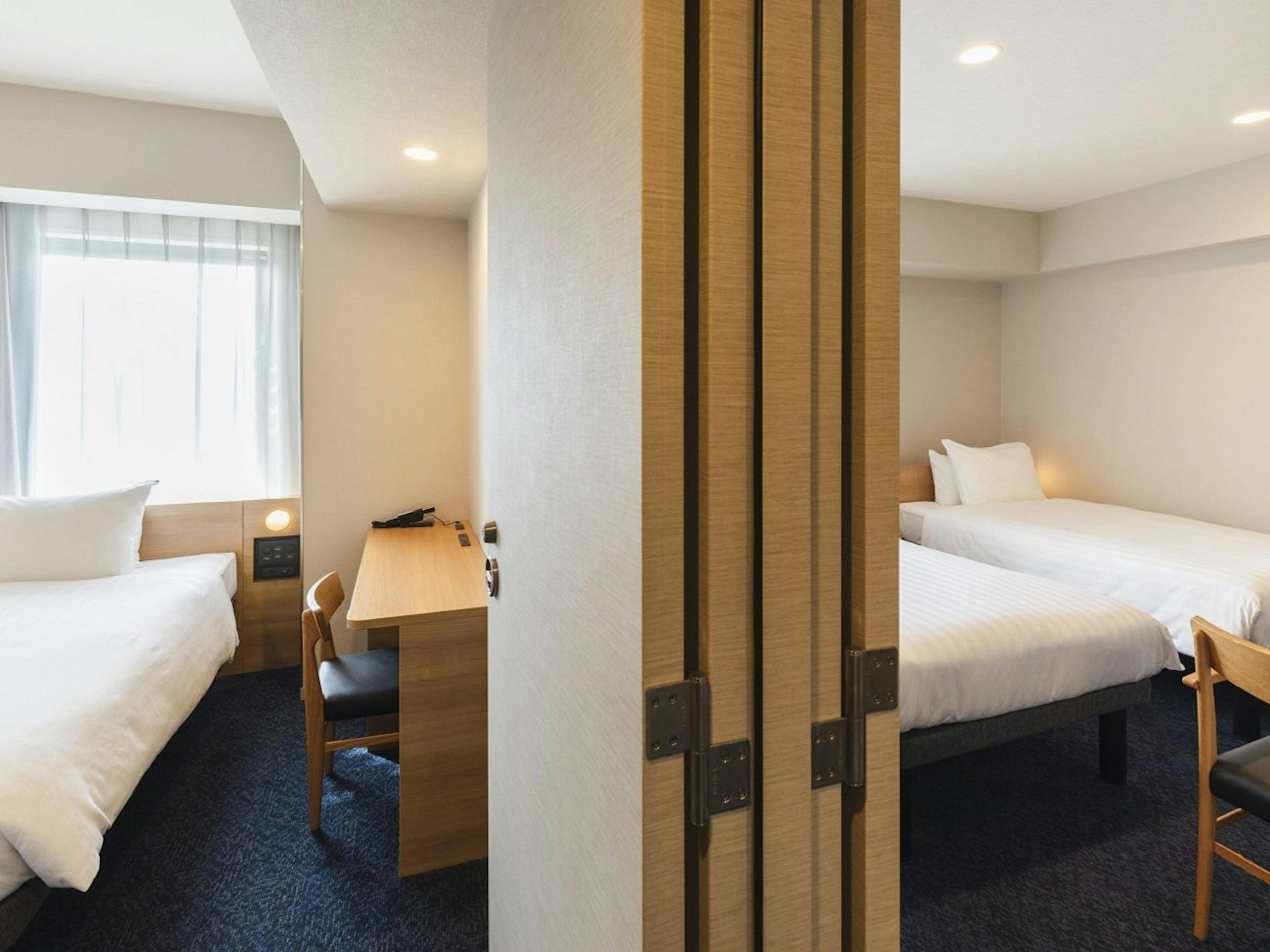 禁煙のコネクティングルームがあるホテルで、隣接したダブルルームとツインルームの内扉が開放されて、廊下に出ることなく直接行き来することができます。