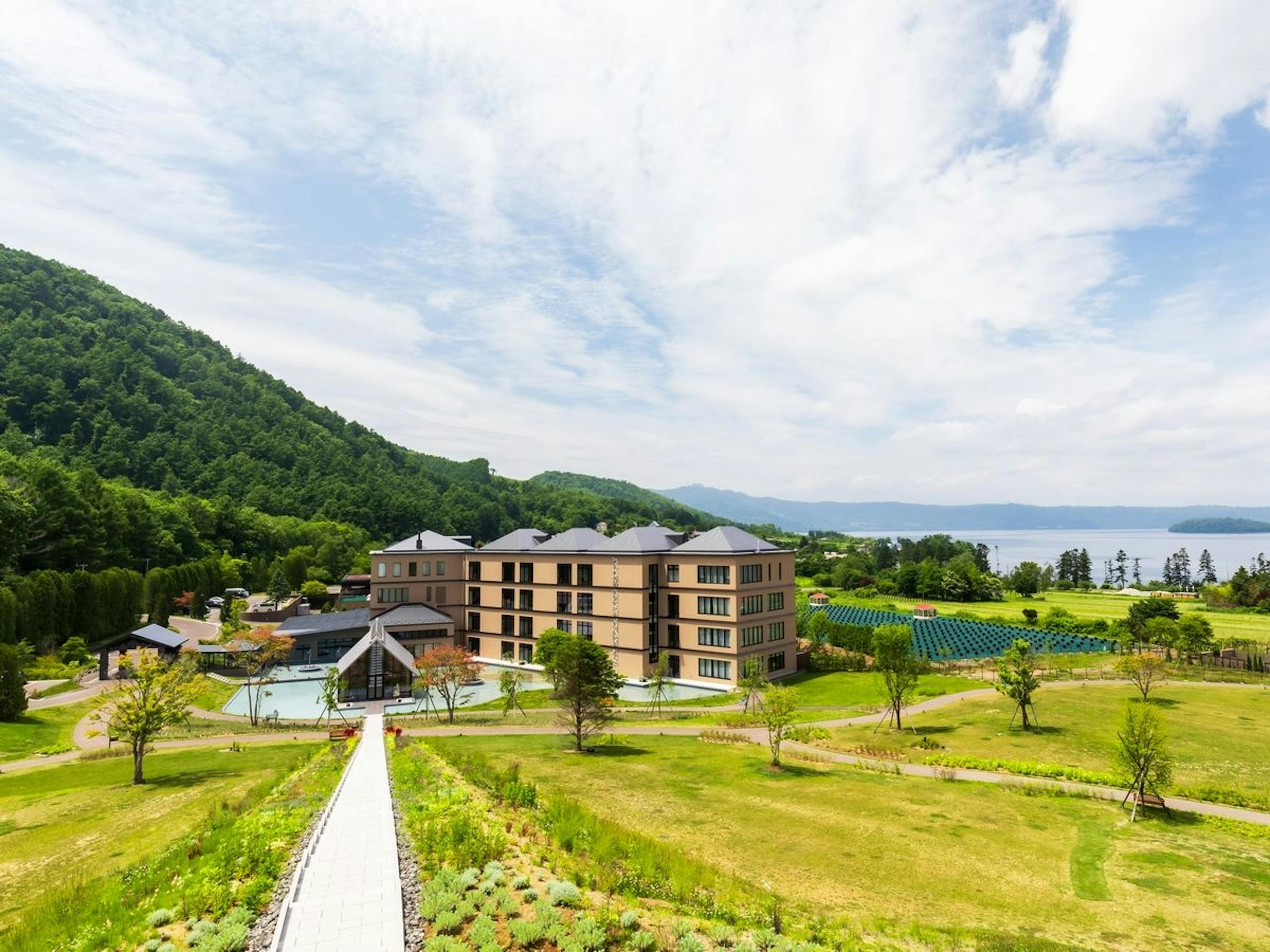 洞爺湖 鶴雅リゾート 洸の謌は昭和新山の麓にて、緑に囲まれて佇むプレミアムな温泉宿です。