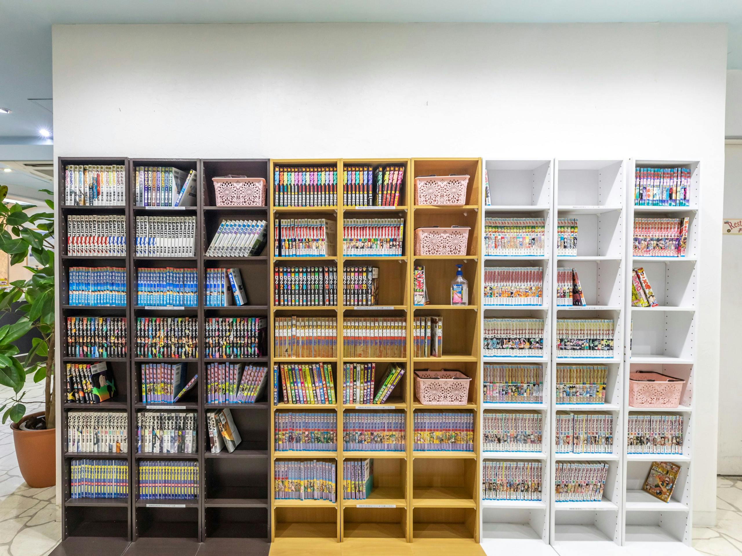 1階に約3000冊ほど揃えたマンガ本コーナーを完備して、お部屋に持ち込んで漫画読み放題することができます。