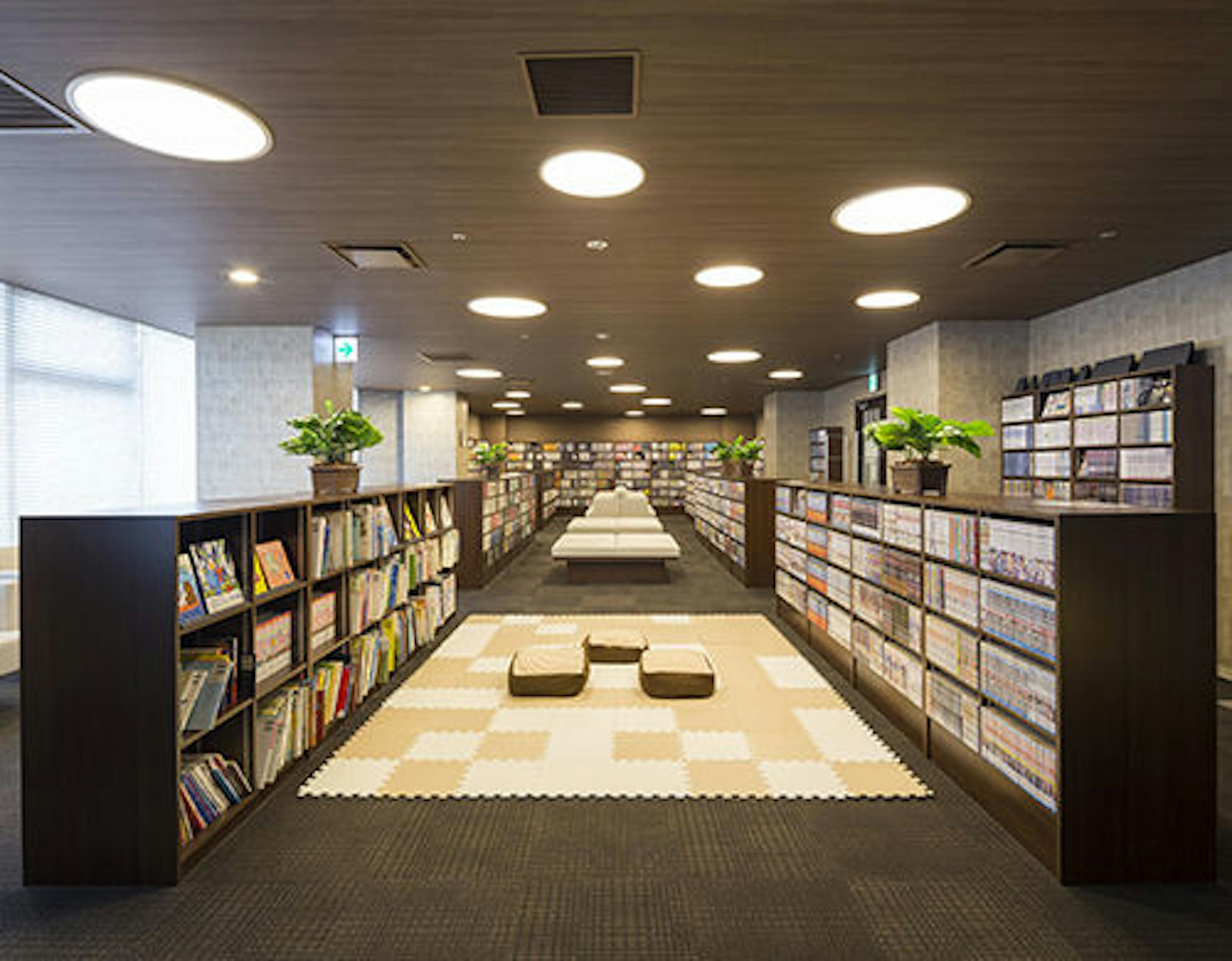 14階の湯上がり処に蔵書を約1000冊ほど揃えたドーミーイン文庫を常設して、漫画読み放題することができるビジネスホテルです。