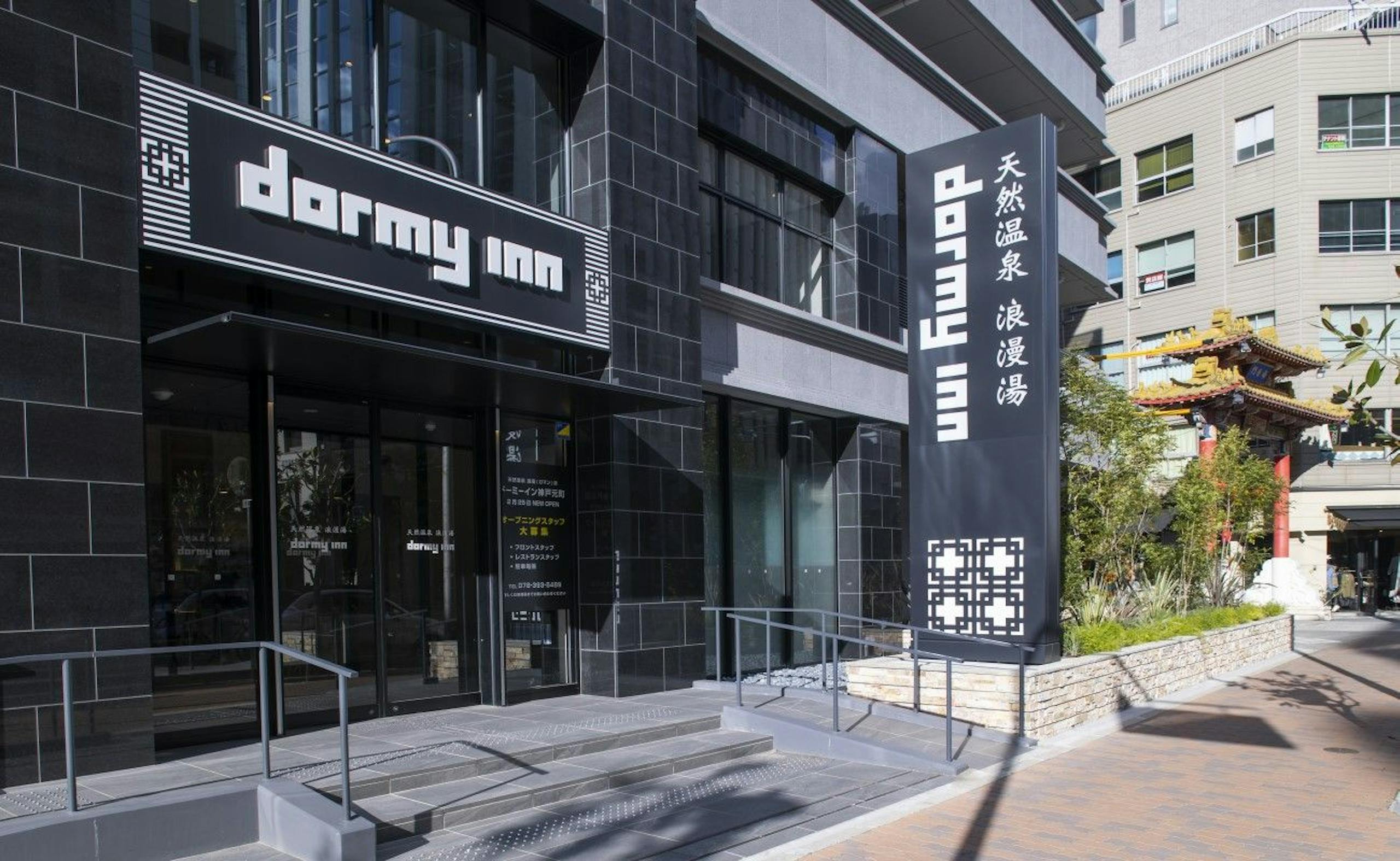 天然温泉 浪漫湯 ドーミーイン神戸元町は元町駅より徒歩約4分、海栄門の目の前に佇んでます。