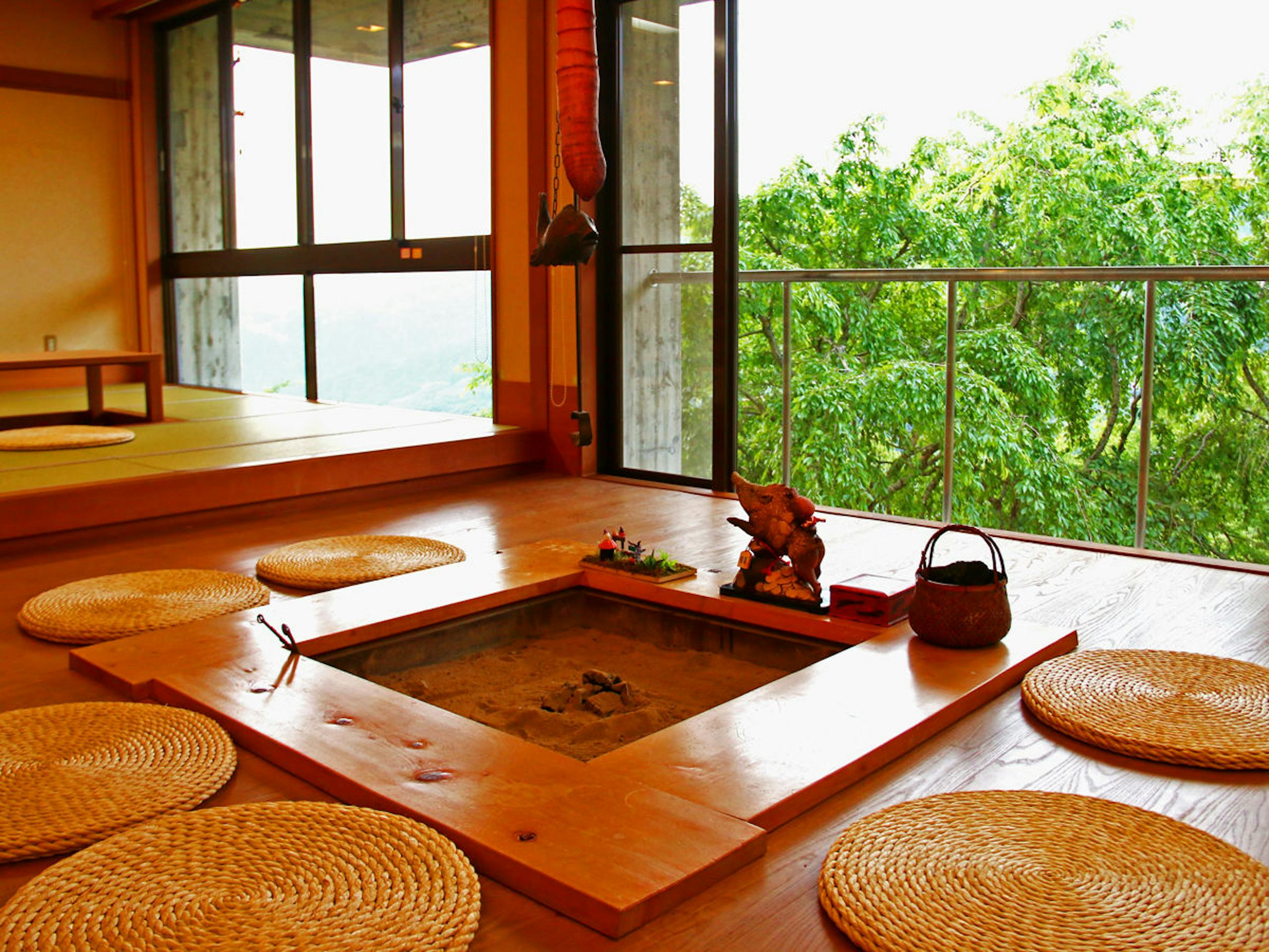 ※ 宿泊施設によって囲炉裏はロビーやお部屋などのインテリアとして設えたり、冬の季節以外には火が入っていないことなどあります。