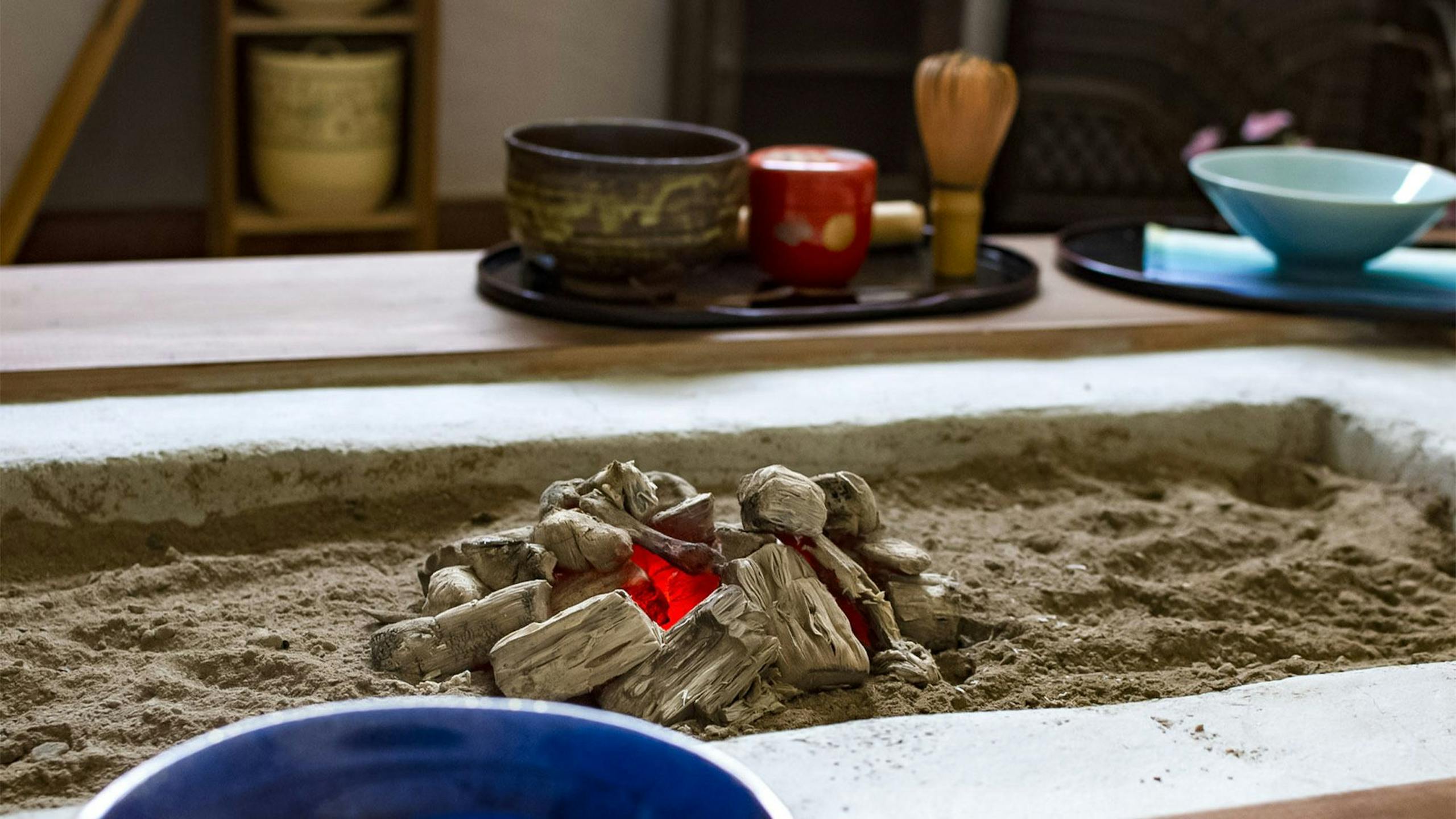 紀州備長炭を使った囲炉裏のある宿となり、落ち着いてお茶を飲んだりすることができます。