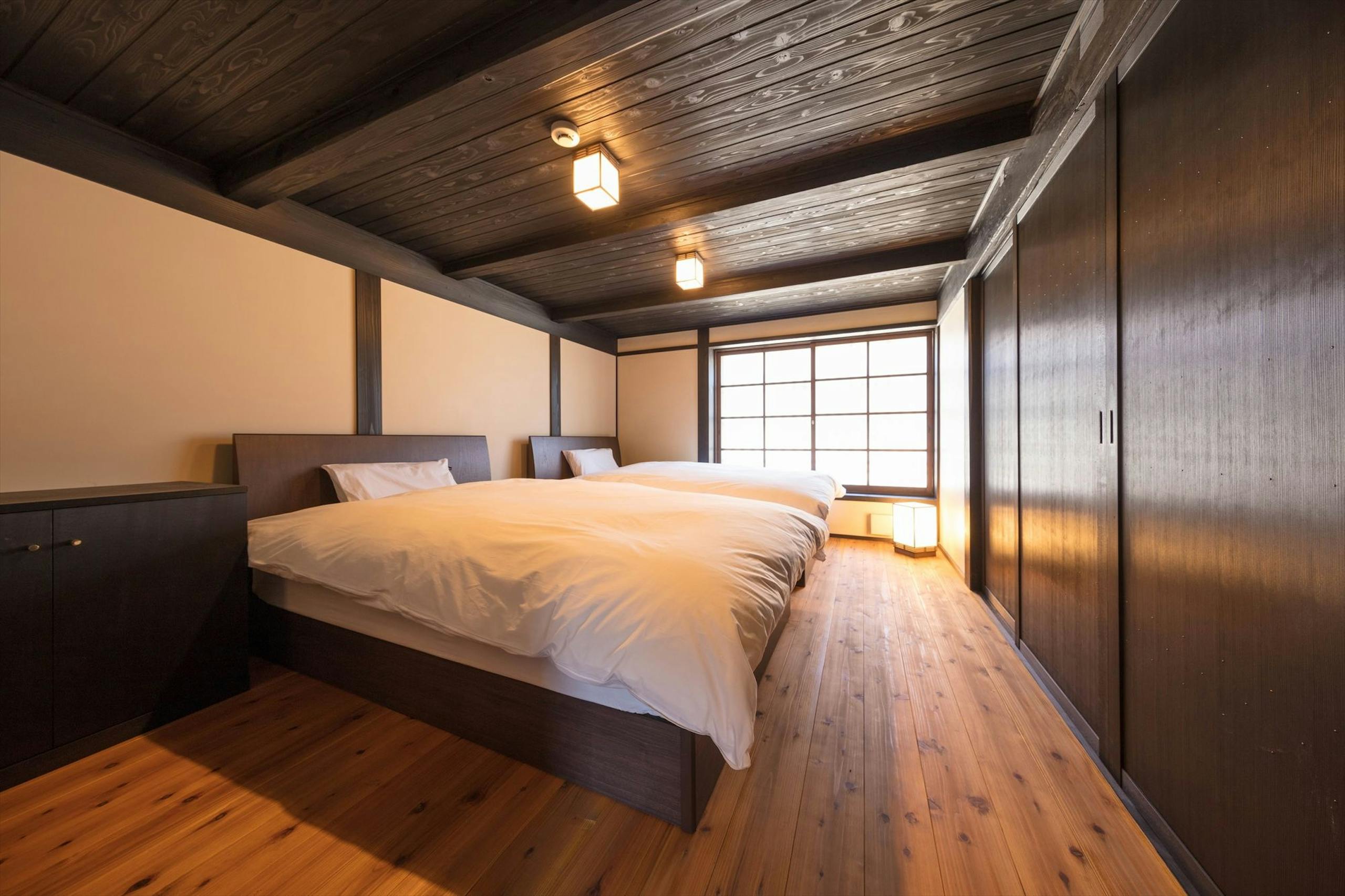 ちなみにこちらの宿は快適に過ごしていただきたいという思いで、町家を表層リノベーションしたものではなく床や壁、天井を剥がして断熱や防音工事を徹底したリノベーションの宿となっています。