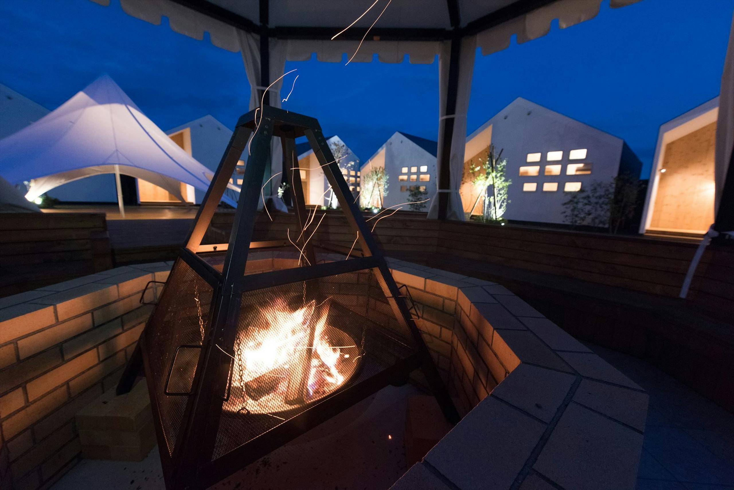 そして共有スペースのTAKIBIテラスでは夜になると焚き火が灯り、子連れの家族など5人まで泊まれます。