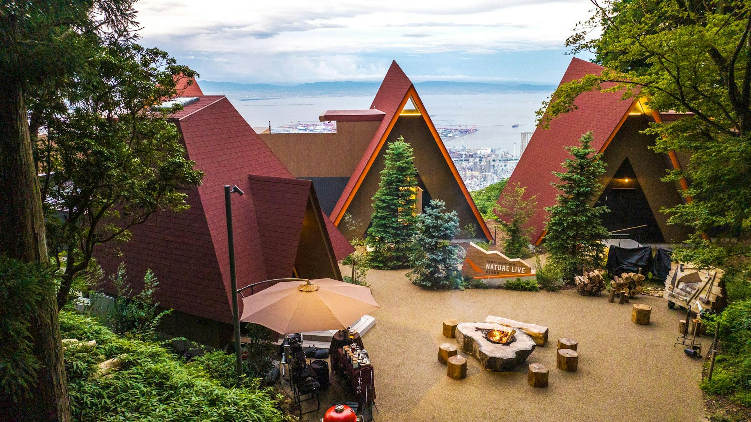 ネイチャーライブ六甲は神戸の街並みと海を見下ろす、六甲の山の中にたたずむ一棟貸しのグランピングです。