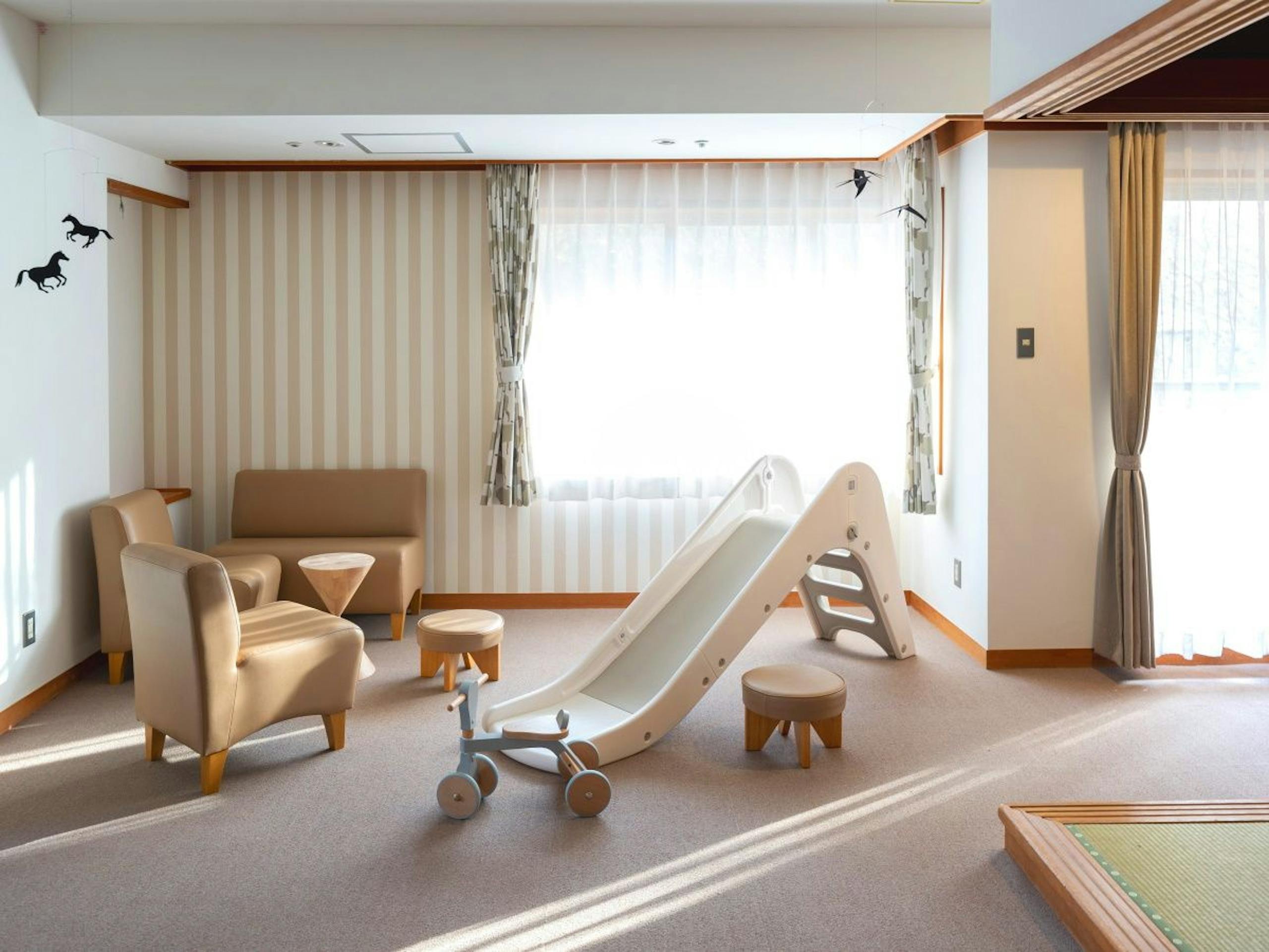 そしてこれらのお部屋には小さな滑り台を設えて、客室に用意されたおもちゃで楽しく遊んだりすることができます。