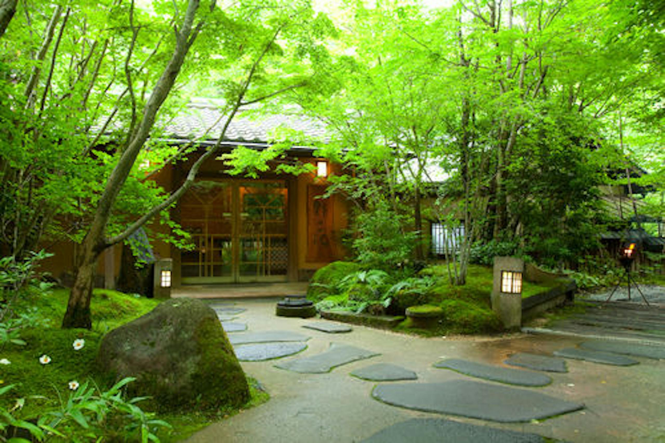 黒川温泉 いこい旅館は、緑に囲まれた静かな温泉街に佇む、どこか懐かしさを感じる大人の宿です。