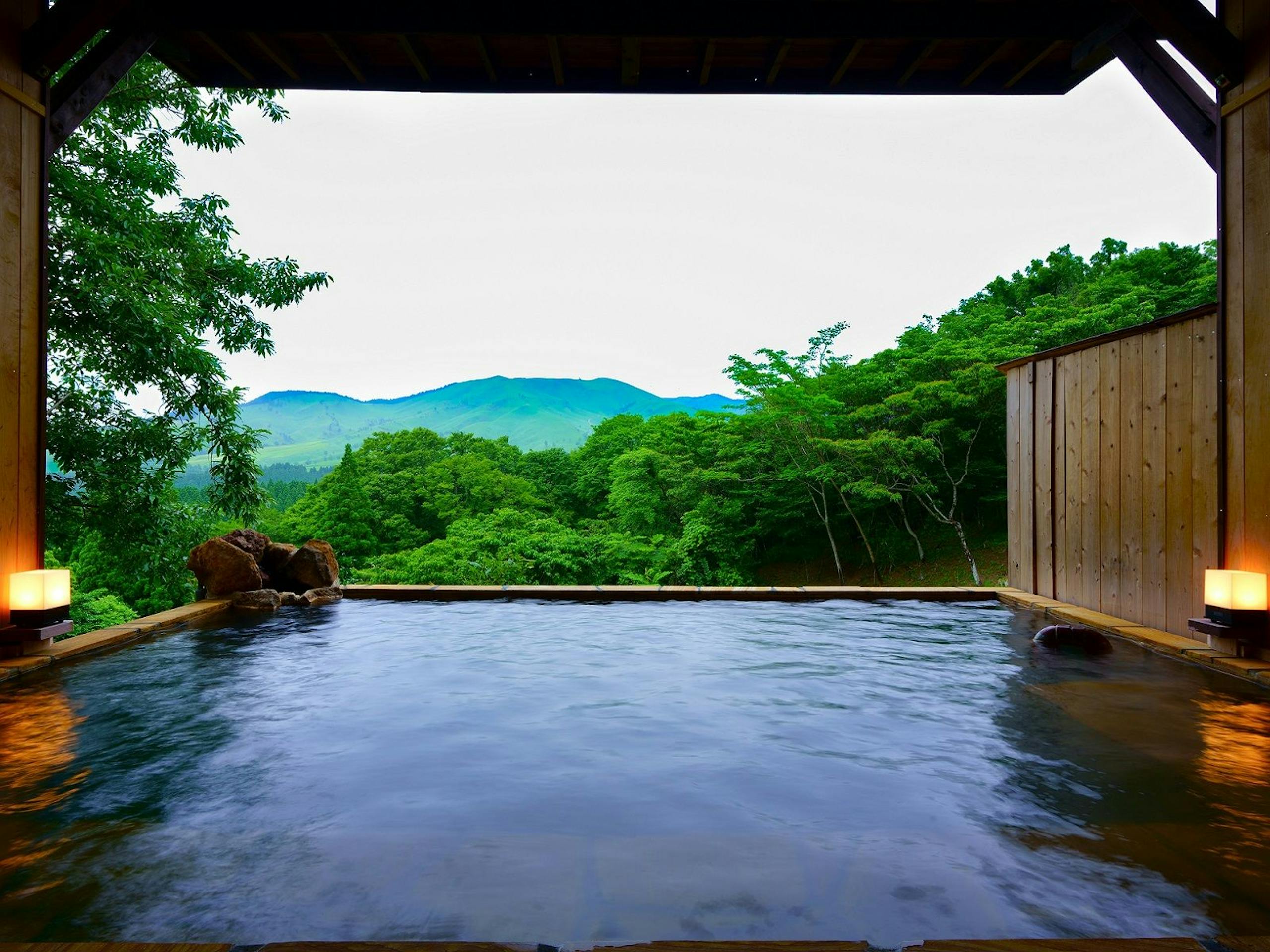 素泊まりプランでは、一棟貸しの「特別室 森のヴィラRURI」に宿泊でき、源泉かけ流しの露天風呂からは絶景を一望して湯浴みできます。