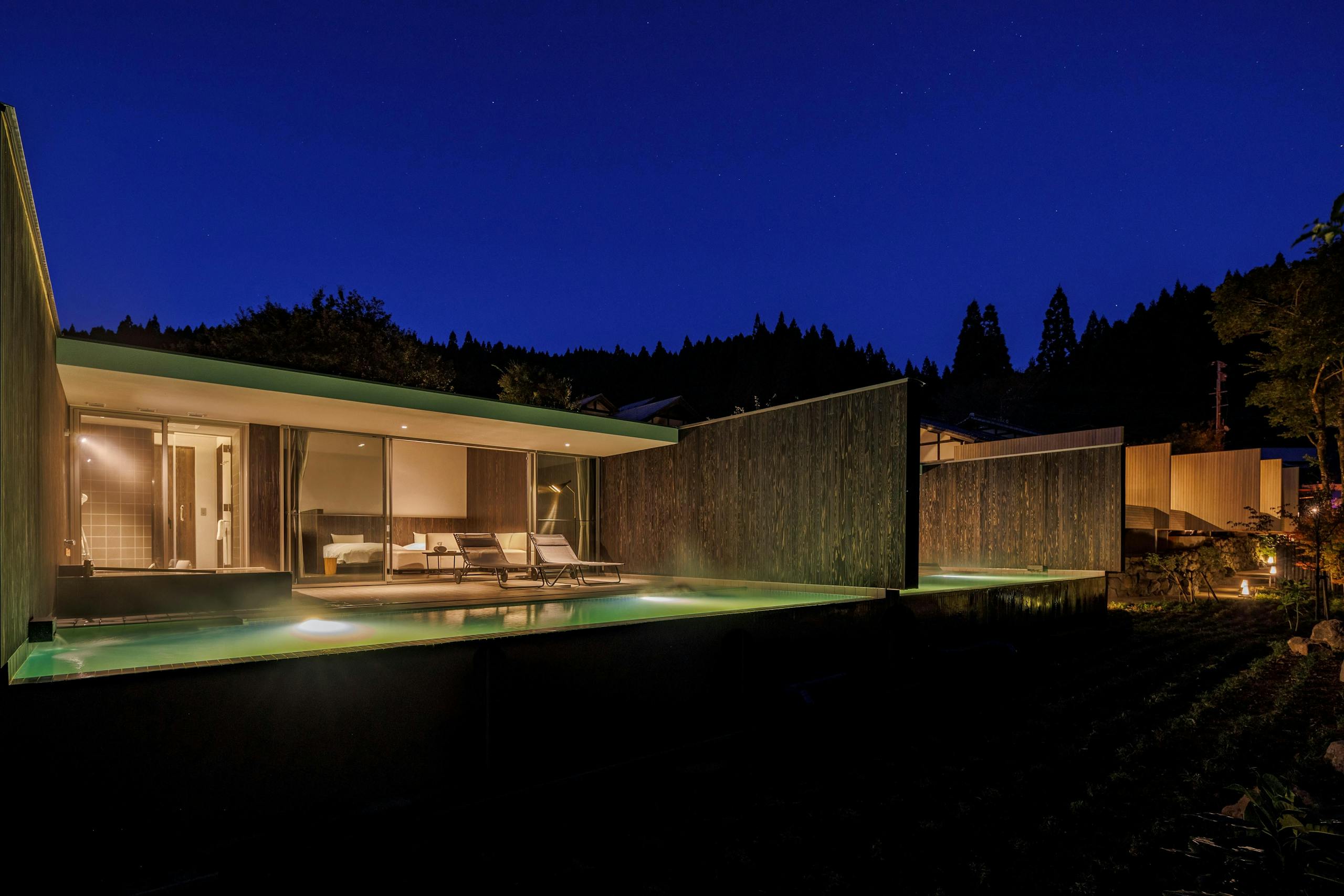 夜の黒川は静かで落ち着いた雰囲気に包まれます。Au Kurokawaを利用したり、少し足を延ばして食事をしたりと、自分らしいスタイルで過ごしてみてください。