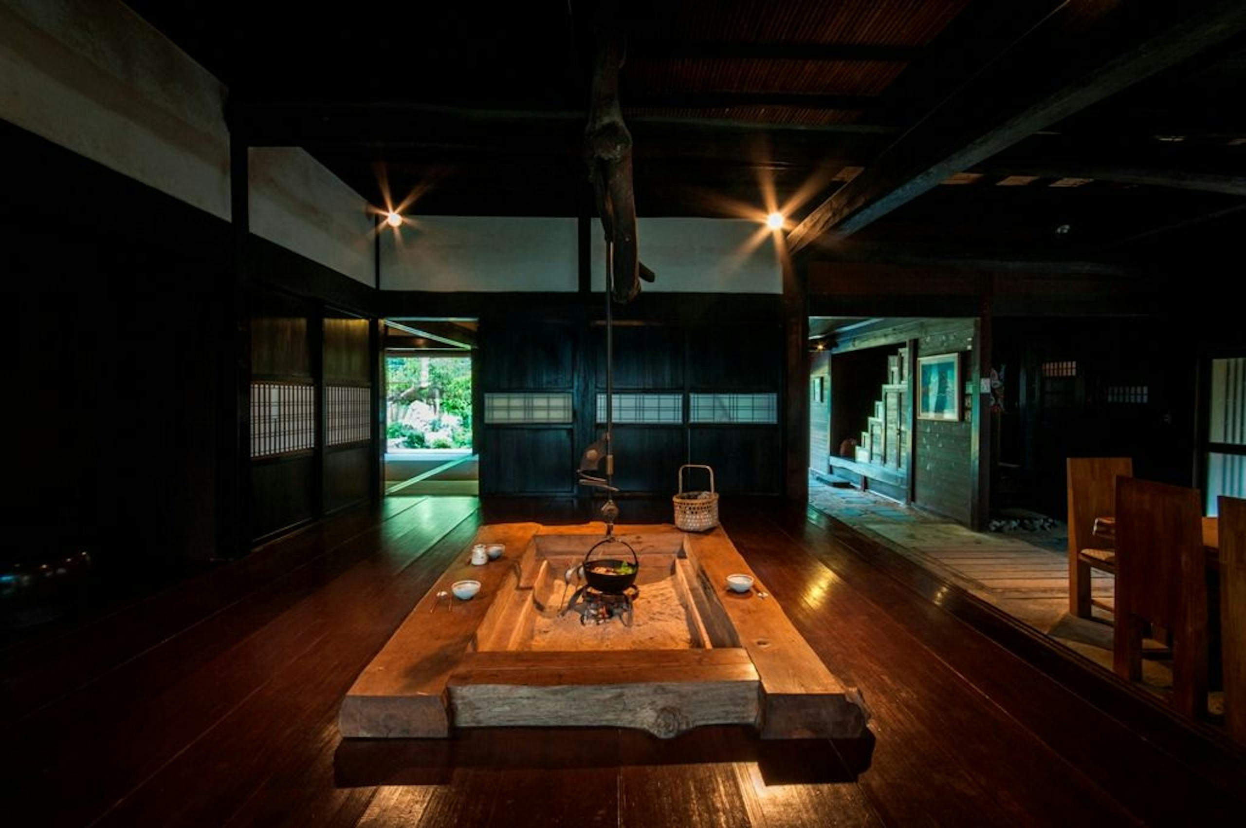 全6棟のうち1棟ある別棟の客室「宗家」に、吹き抜けの囲炉裏がある宿となっています。
