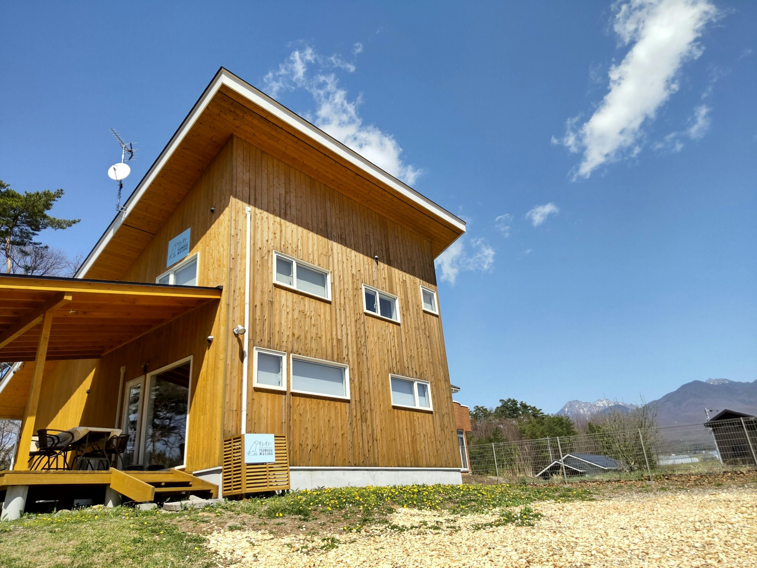 PrivateHotelWithDog紡ぐ結ぶは富士山や八ヶ岳を望む、原村の一角に佇む1日1組限定のプライベートホテルです。