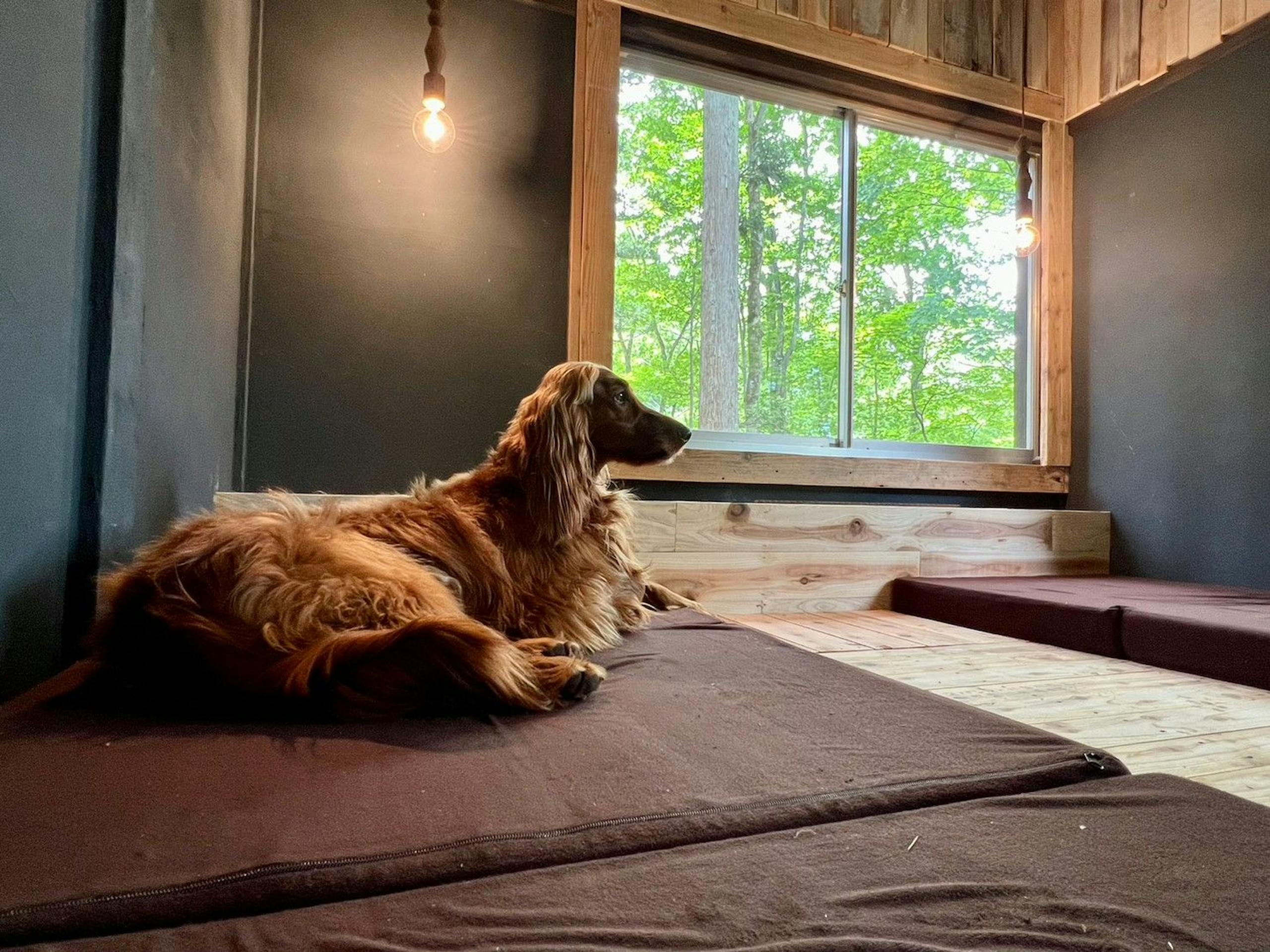 室内にはワンちゃんも一緒に寝れるベッドを設え、小型犬から超大型犬まで同伴できます。