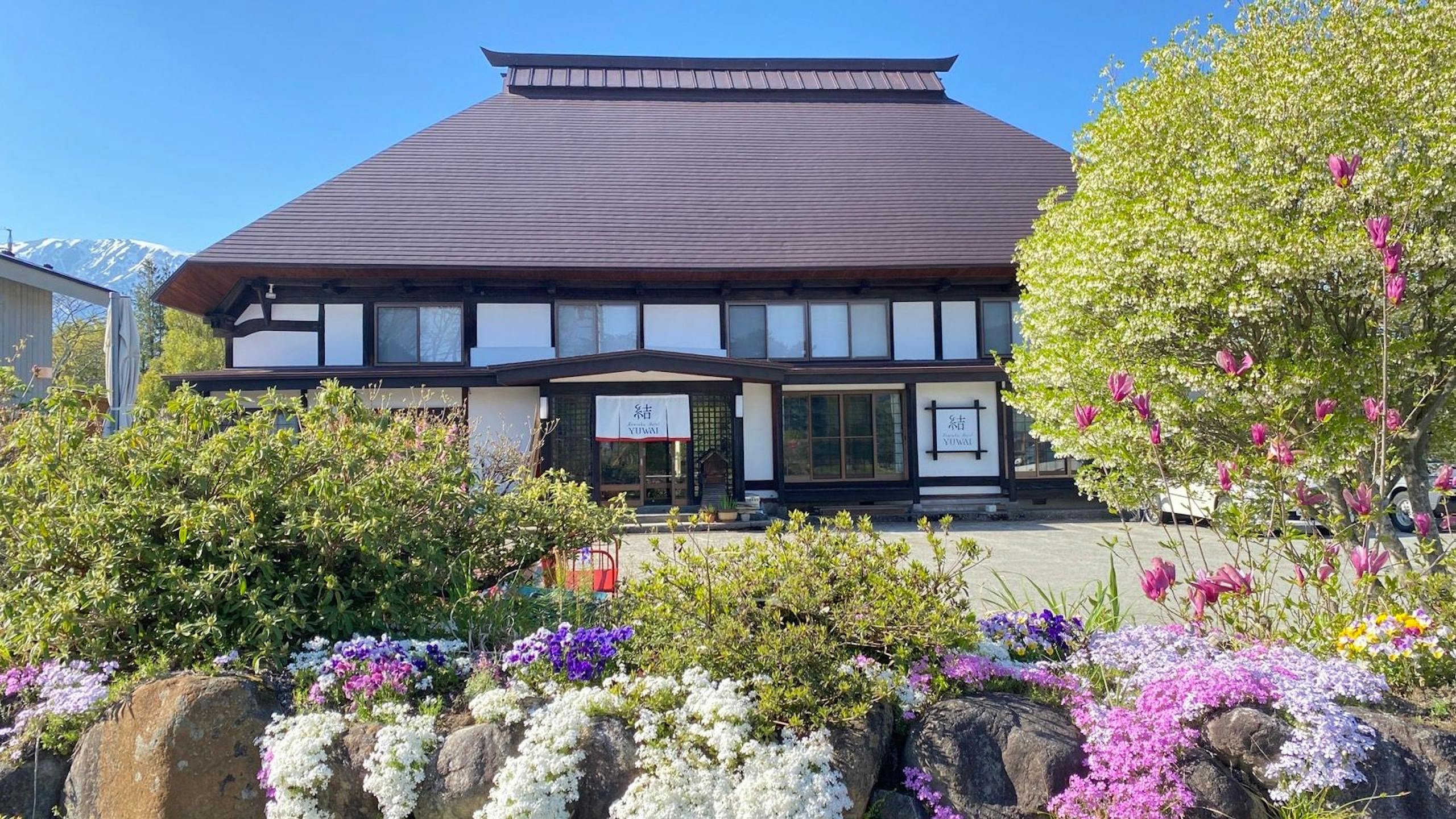 古民家ホテル結 YUWAIは白馬の田園風景の中に佇んでます。