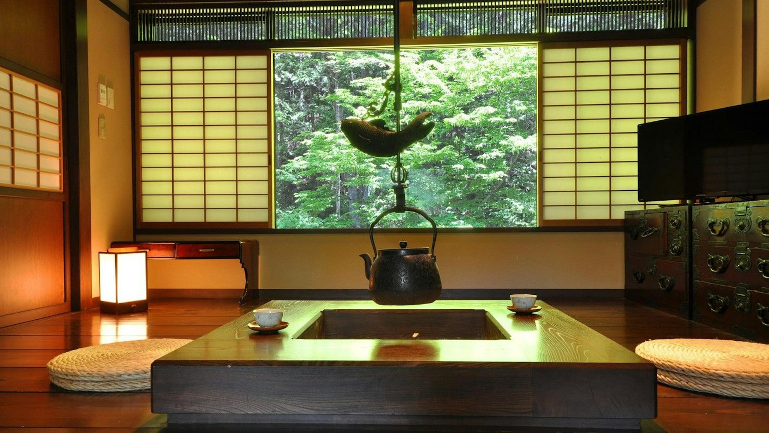 ※ 宿泊施設によって囲炉裏は冬季以外の季節には火が灯っていなかったり、お部屋のインテリアとして設え火が入っていないことがあります。