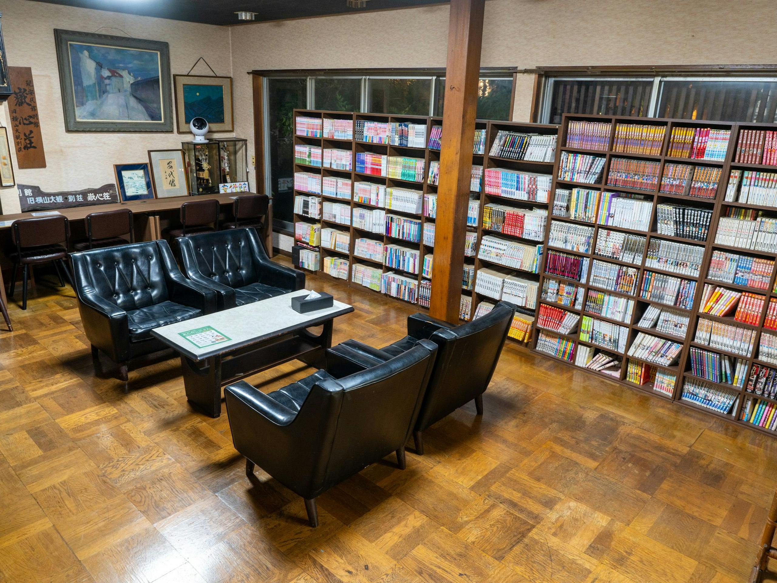 館内に小説やコミックなど揃えた駒の湯文庫が設置され、くつろぎながら漫画が読める温泉旅館です。