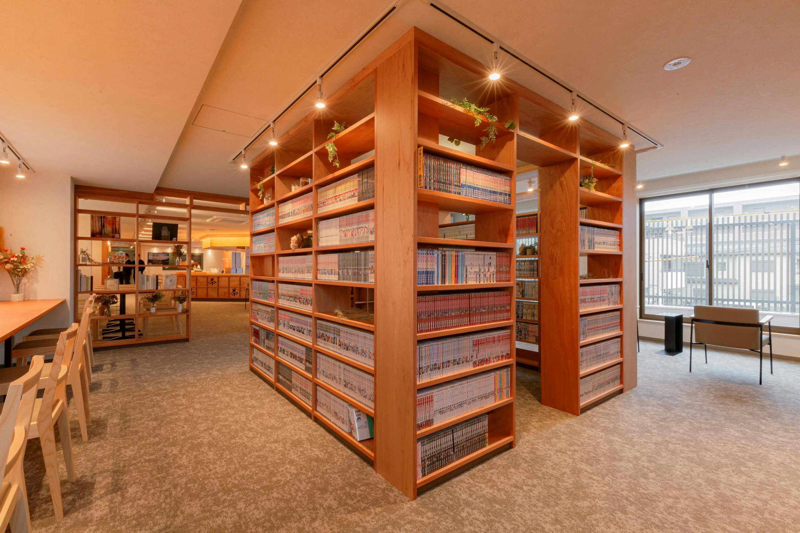 コミックがメインで話題作や名作などの蔵書を約10000冊ほど取り揃えた図書室を常設し、5冊までお部屋に持ち込んで漫画読み放題できるホテルです。
