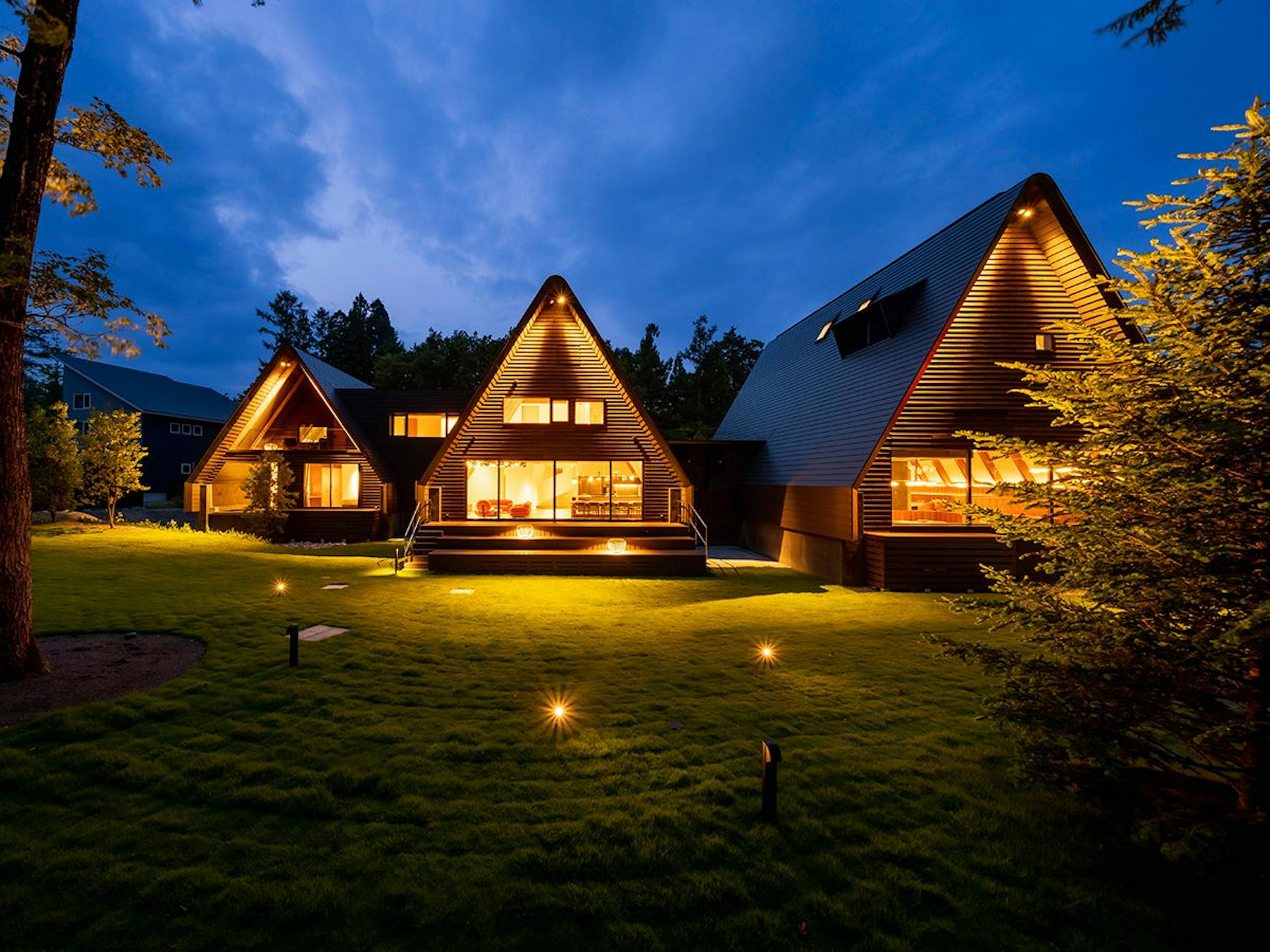 KanollyResorts Hakuba は閑静な別荘地である白馬みそら野の森に佇む、iFデザインアワード2023を受賞した1日1組限定のプライベートヴィラです。