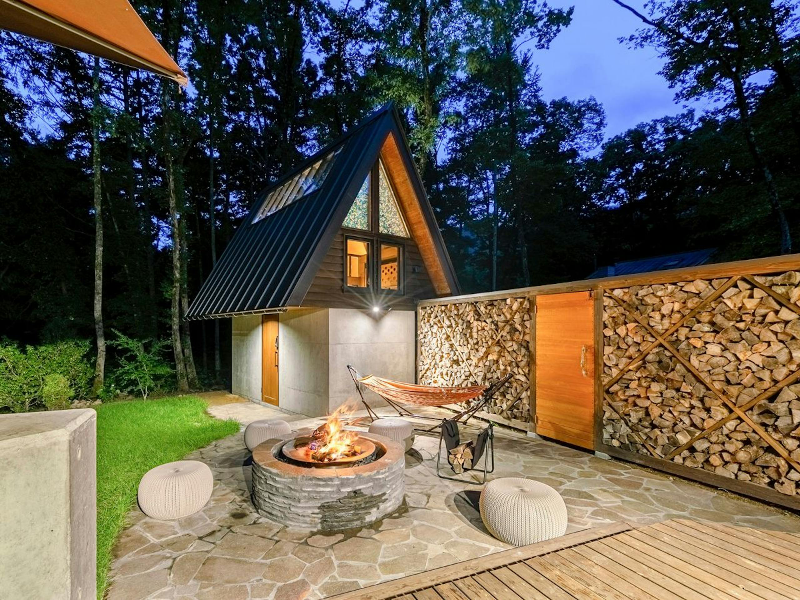 こちらにはTRIPLEファイアーピットが用意され、夜になったらゆれる炎を眺めたりして、焚き火ができる貸別荘です。
