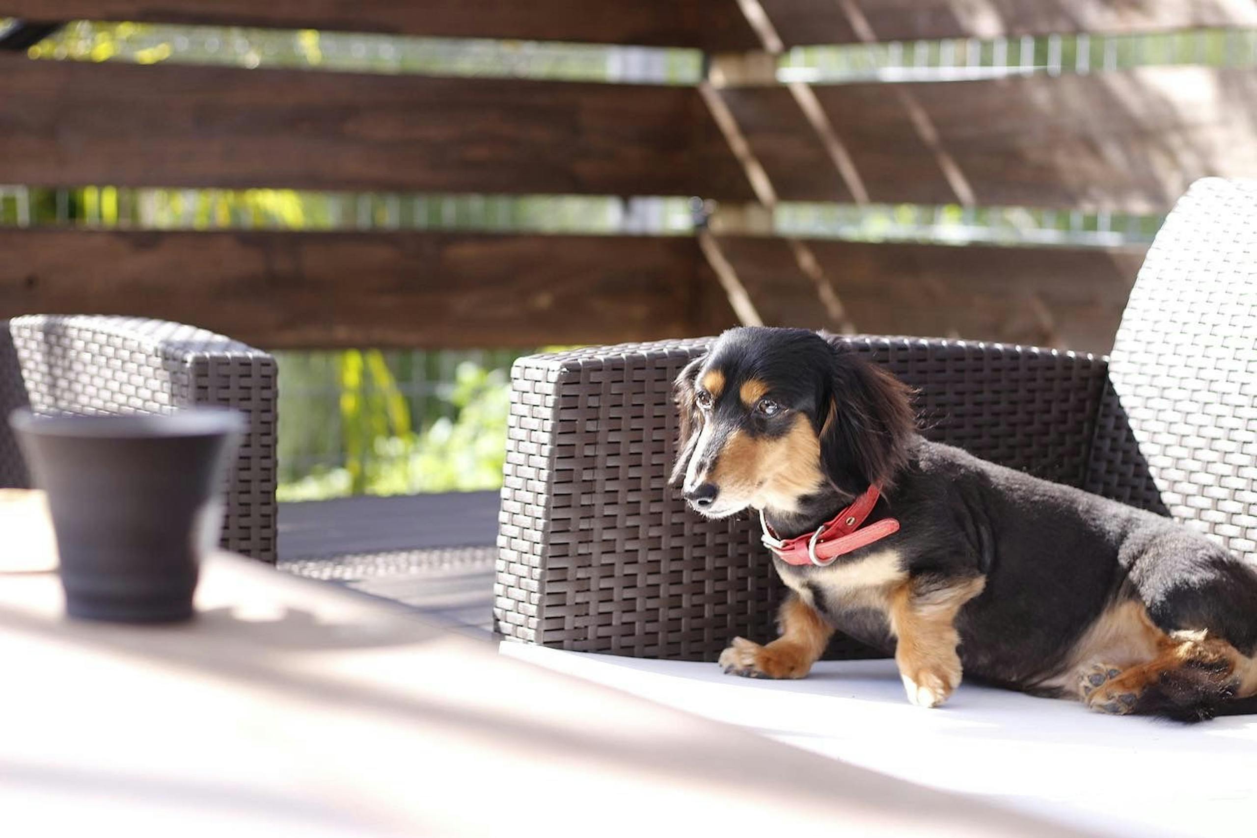 1日1組限定で一戸建ての宿となり、緑のお庭によるプライベートドッグラン付き宿です。