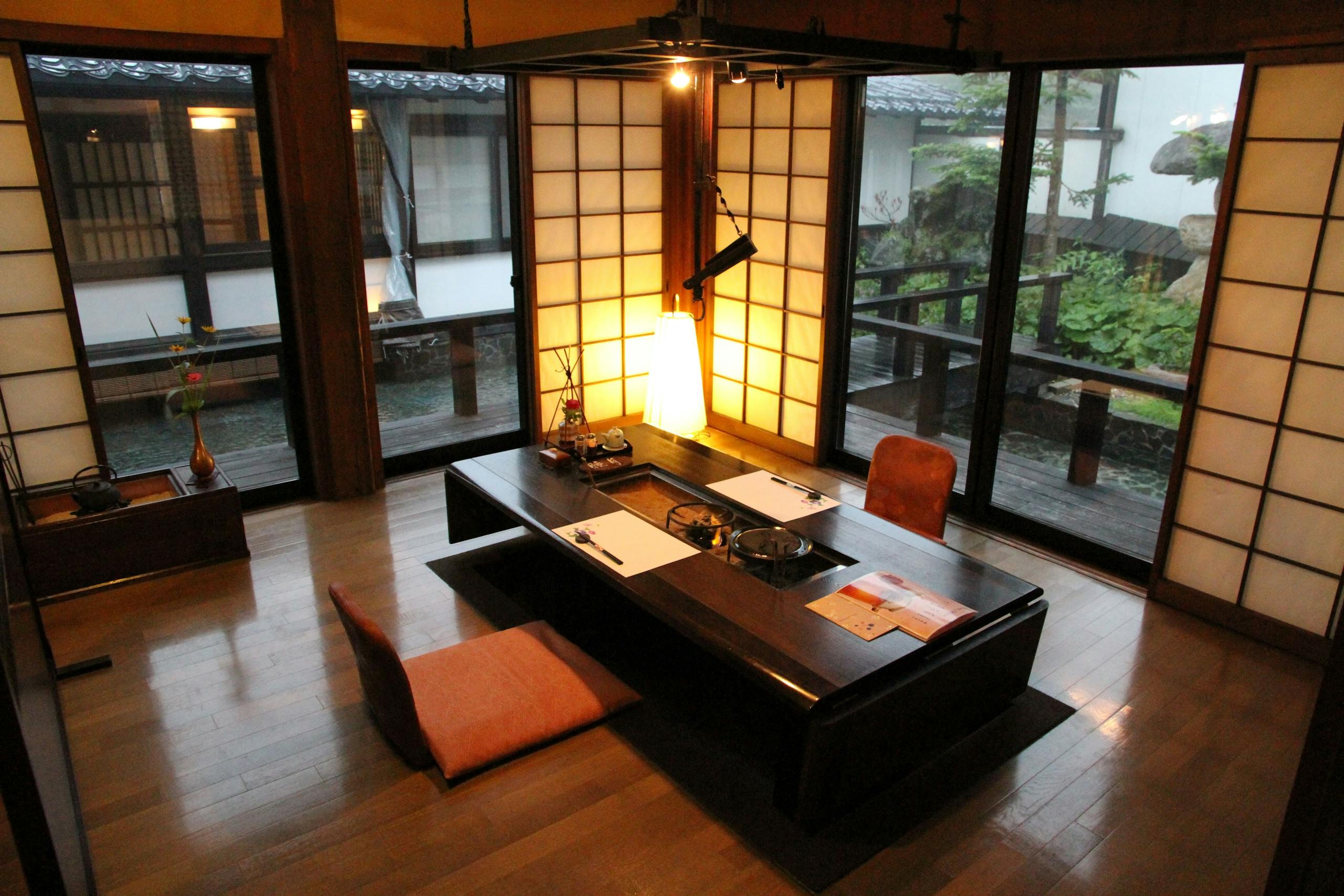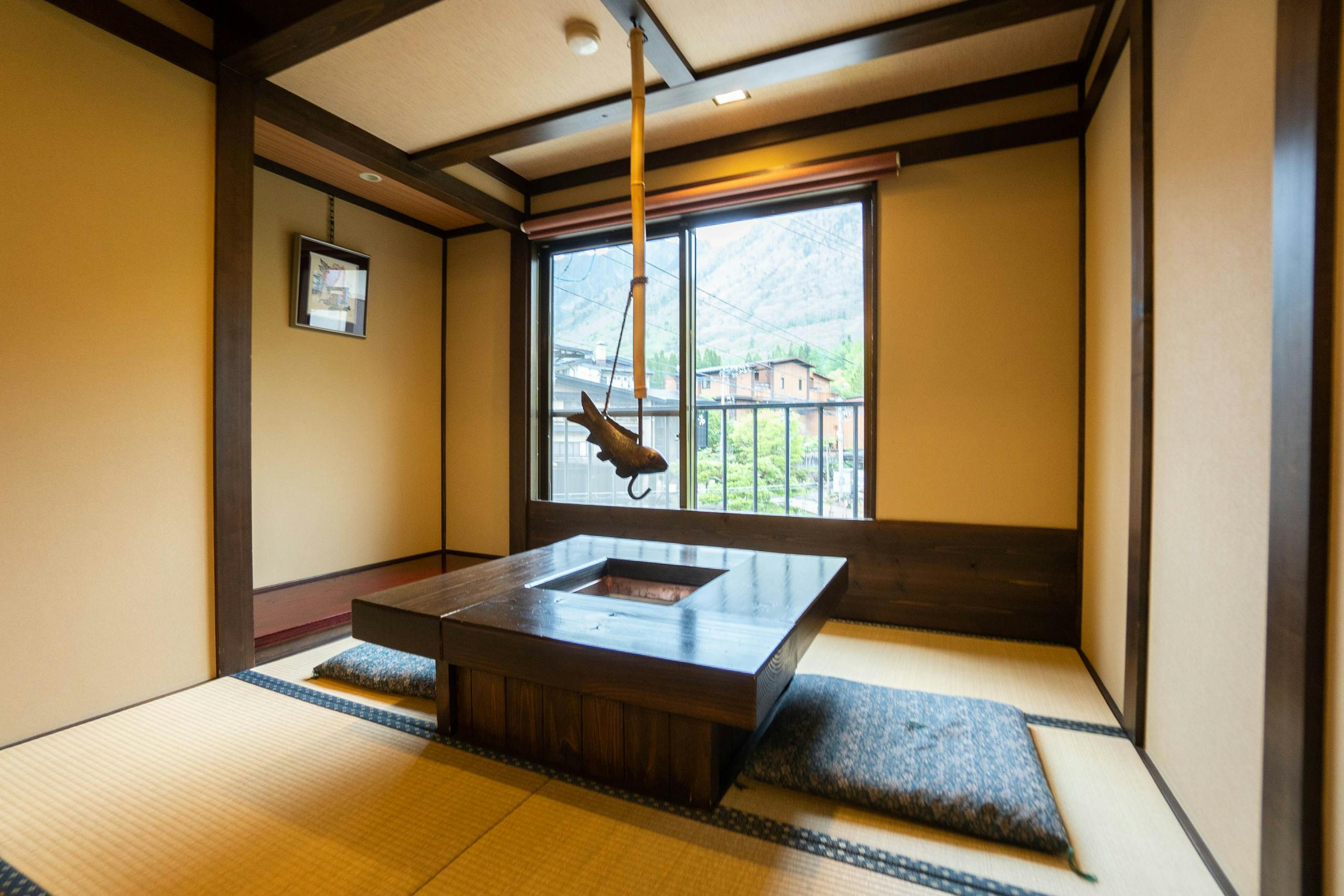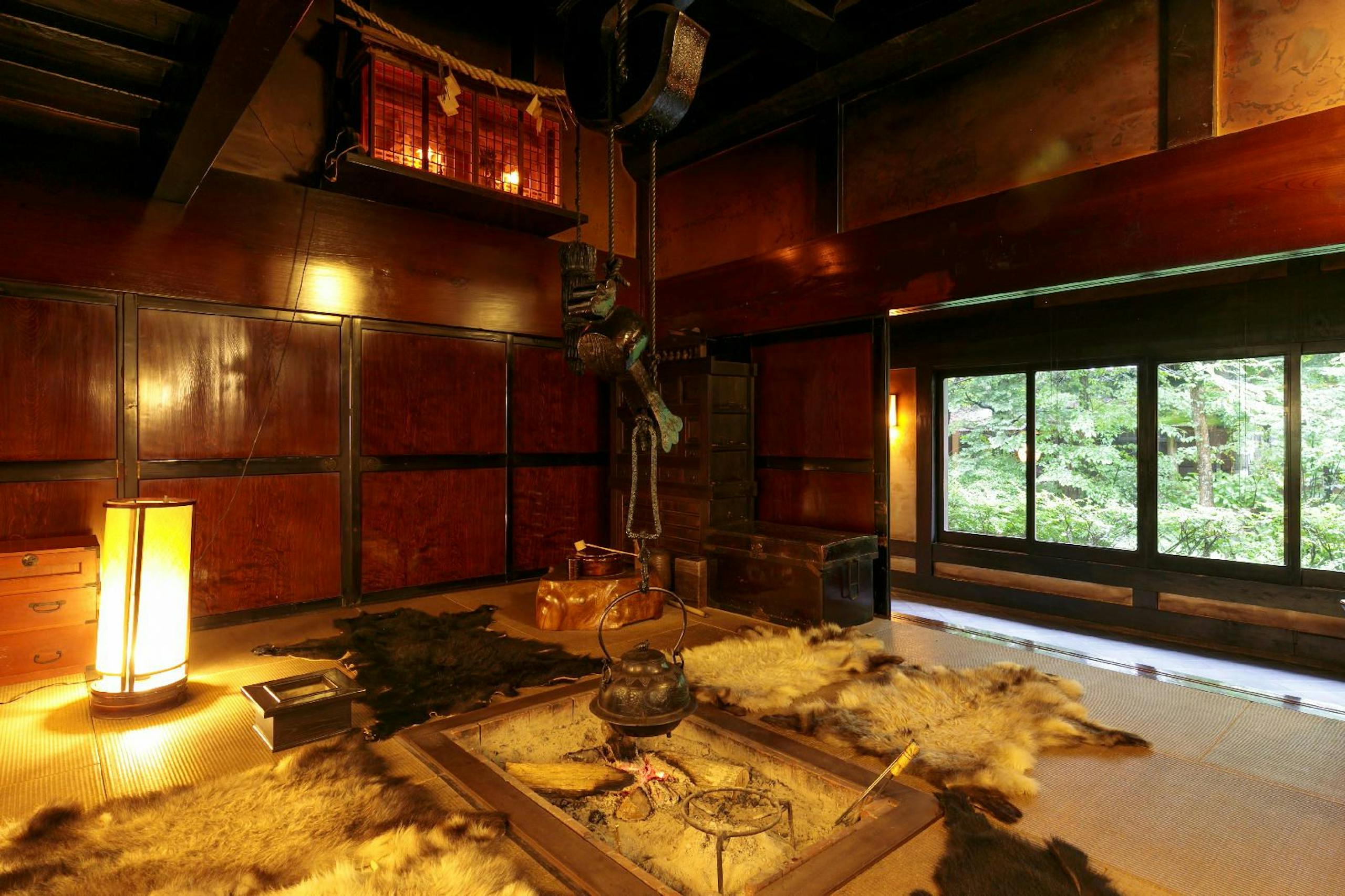 ※ 宿泊施設によって囲炉裏は冬季以外の季節には火が灯っていなかったり、お部屋のインテリアとして設え火が入っていないことがあります。