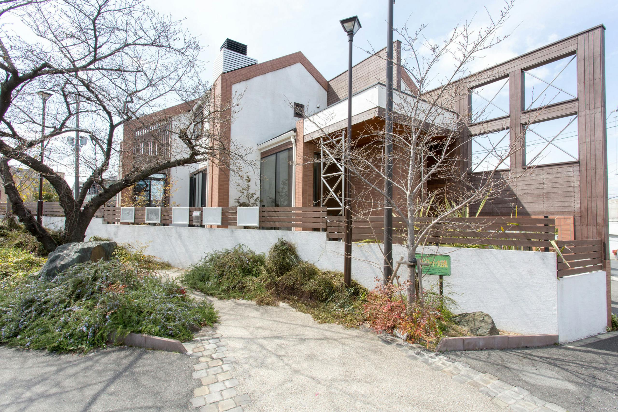 暖炉之宿 コンセプトハウス星田はJR星田駅の南側出口より徒歩約4分、大谷橋交差点の目の前に佇むモデルハウスの宿です。