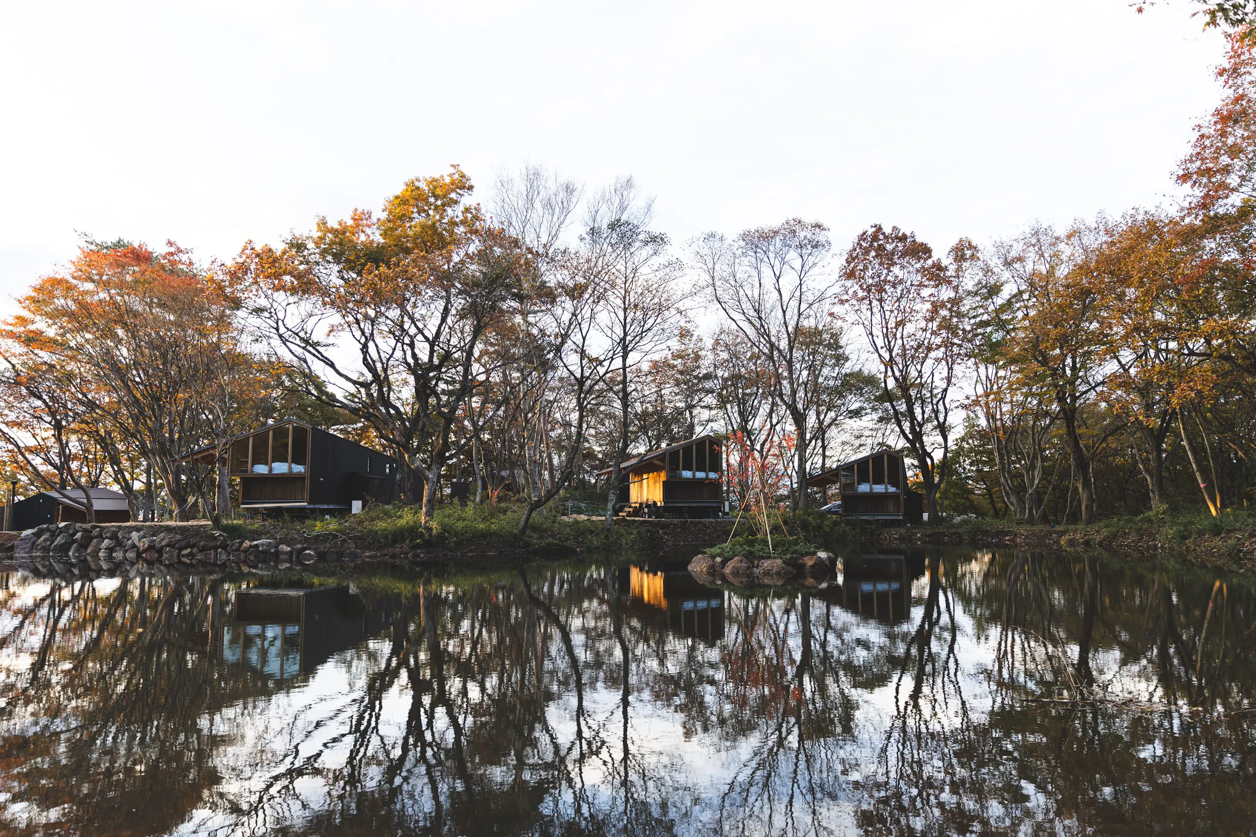 那須湯本の池のほとりに佇むアウトドアホテルで、全19棟にプライベート薪サウナを完備。セルフロウリュができ、水風呂やインフィニティチェアもそろっているため、那須の自然を感じながら整う時間を過ごせます。