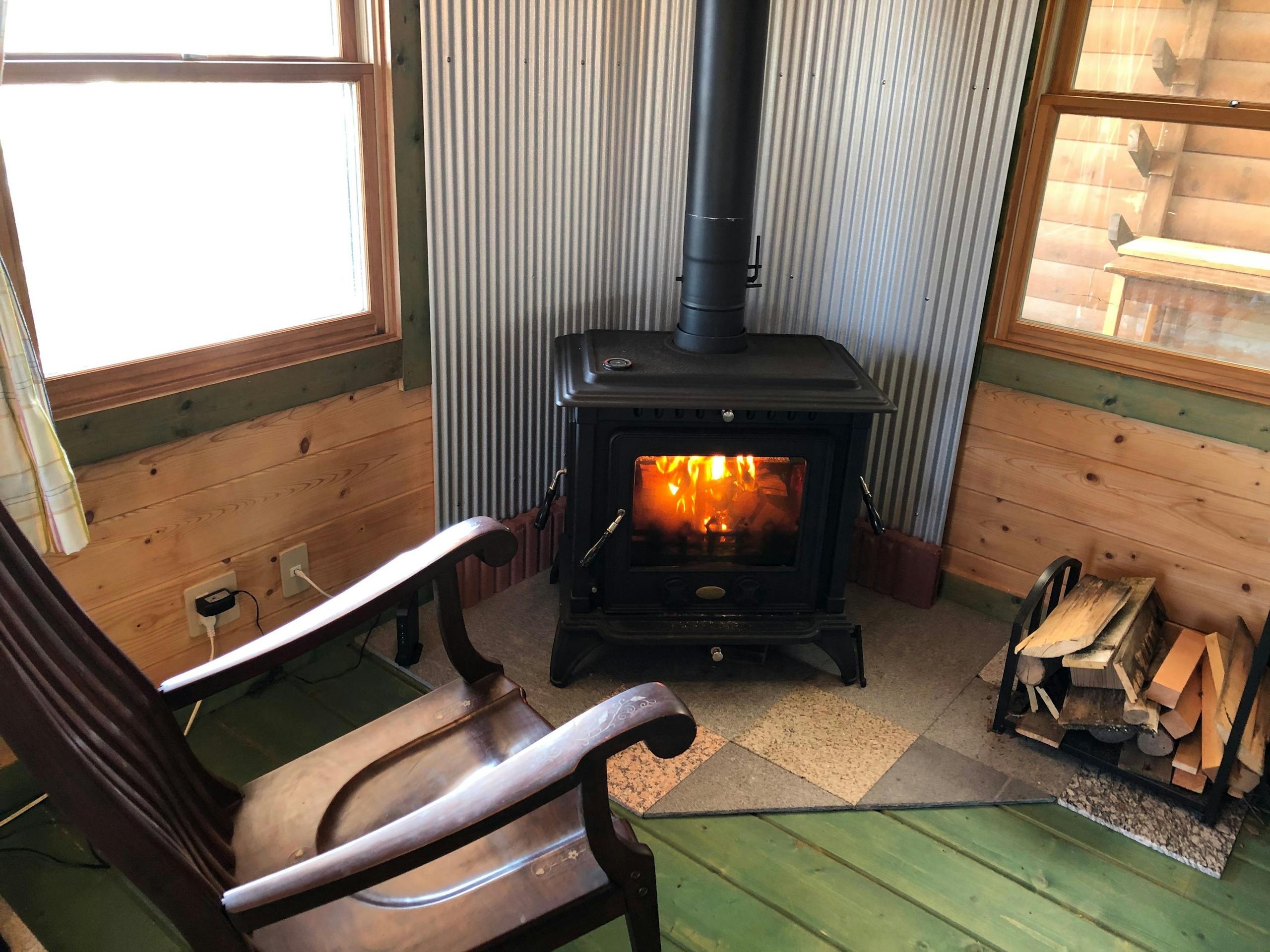 ログハウスの室内に暖炉のある宿となり(木材含め有料)、炎を眺めてくつろぐことができます。