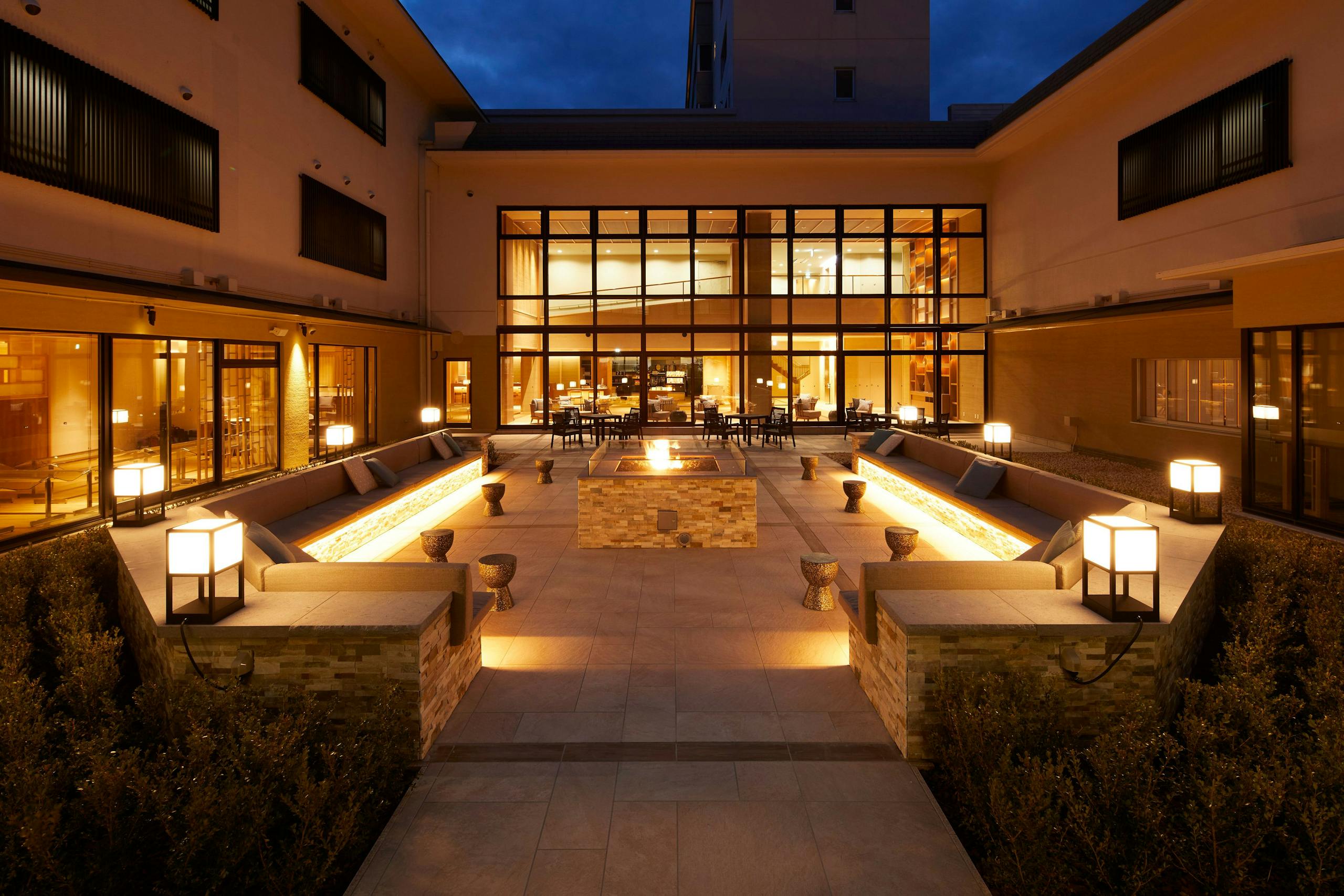 お庭にエタノール暖炉のある宿となり、その周りのソファーセットでゆっくりくつろぐことができます。