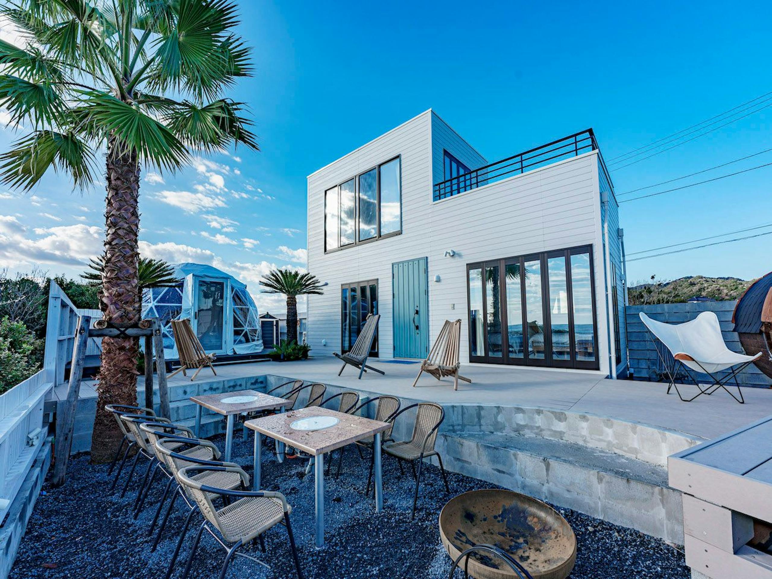 RivageBlue(リバージュブルー)は新舞子海岸の目の前に佇む、貸別荘とグランピングの宿です。