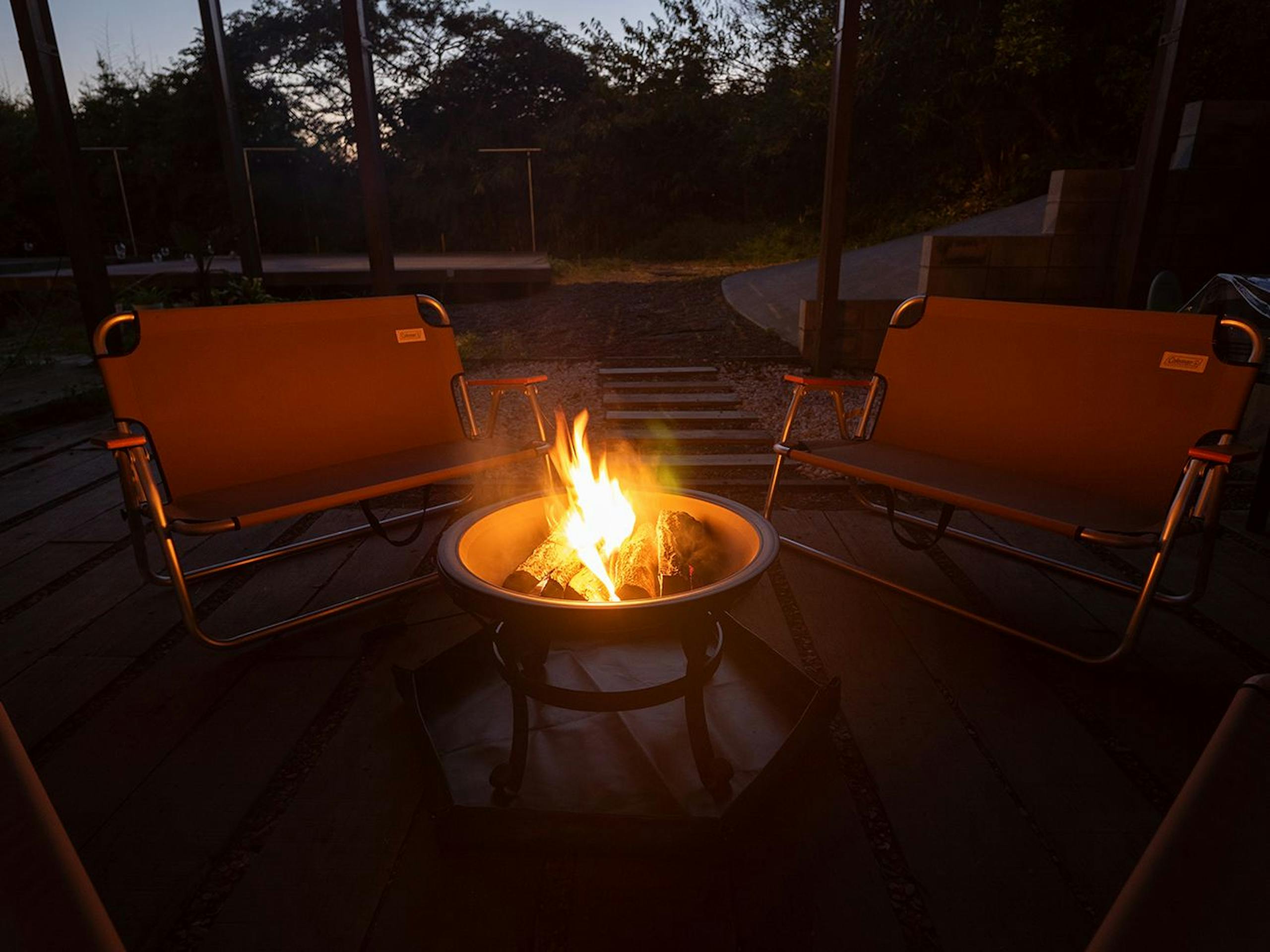 こちらには焚火台のレンタル(有料)があるので、炎を囲んで焚き火ができるヴィラとなっています。