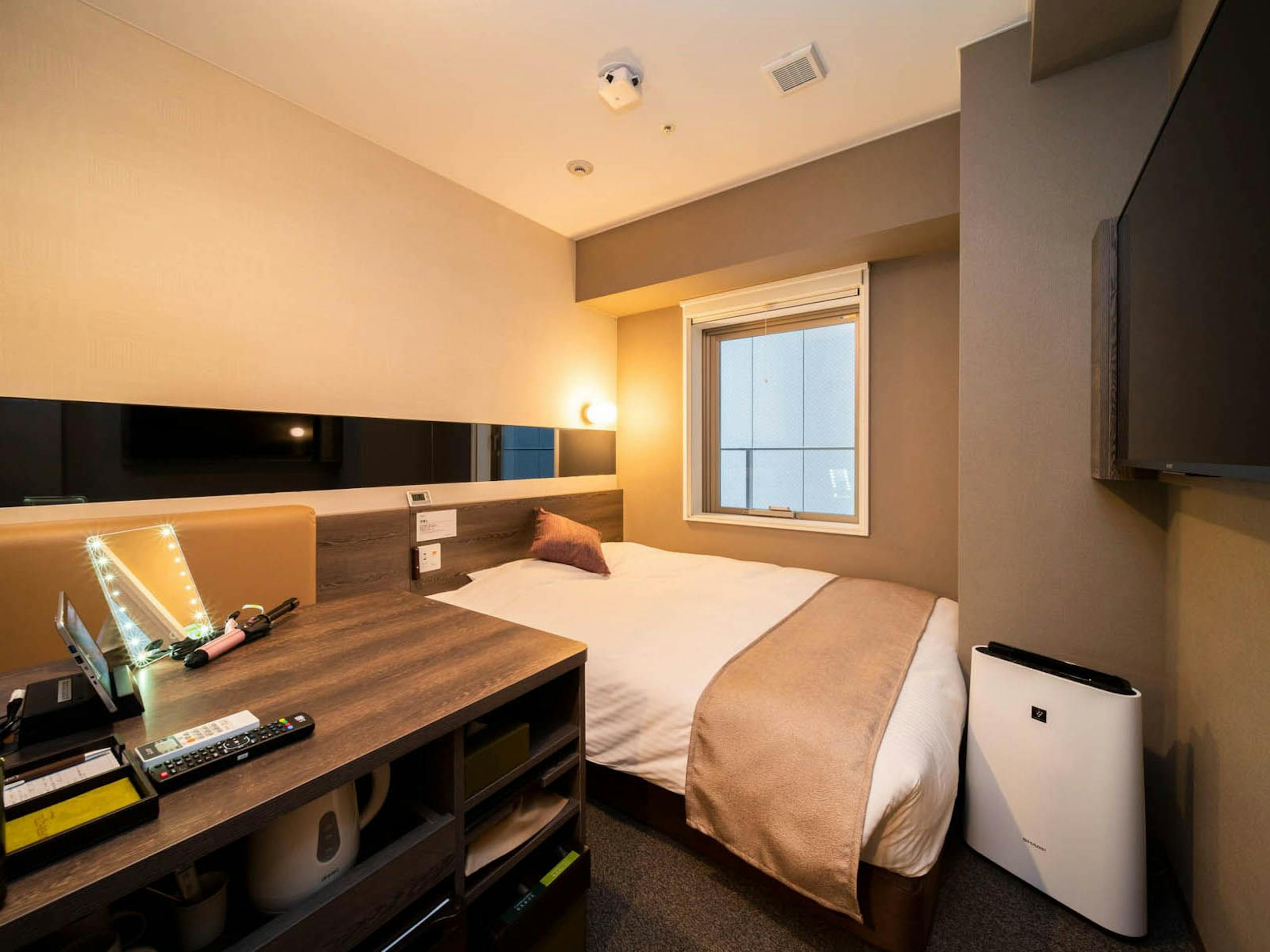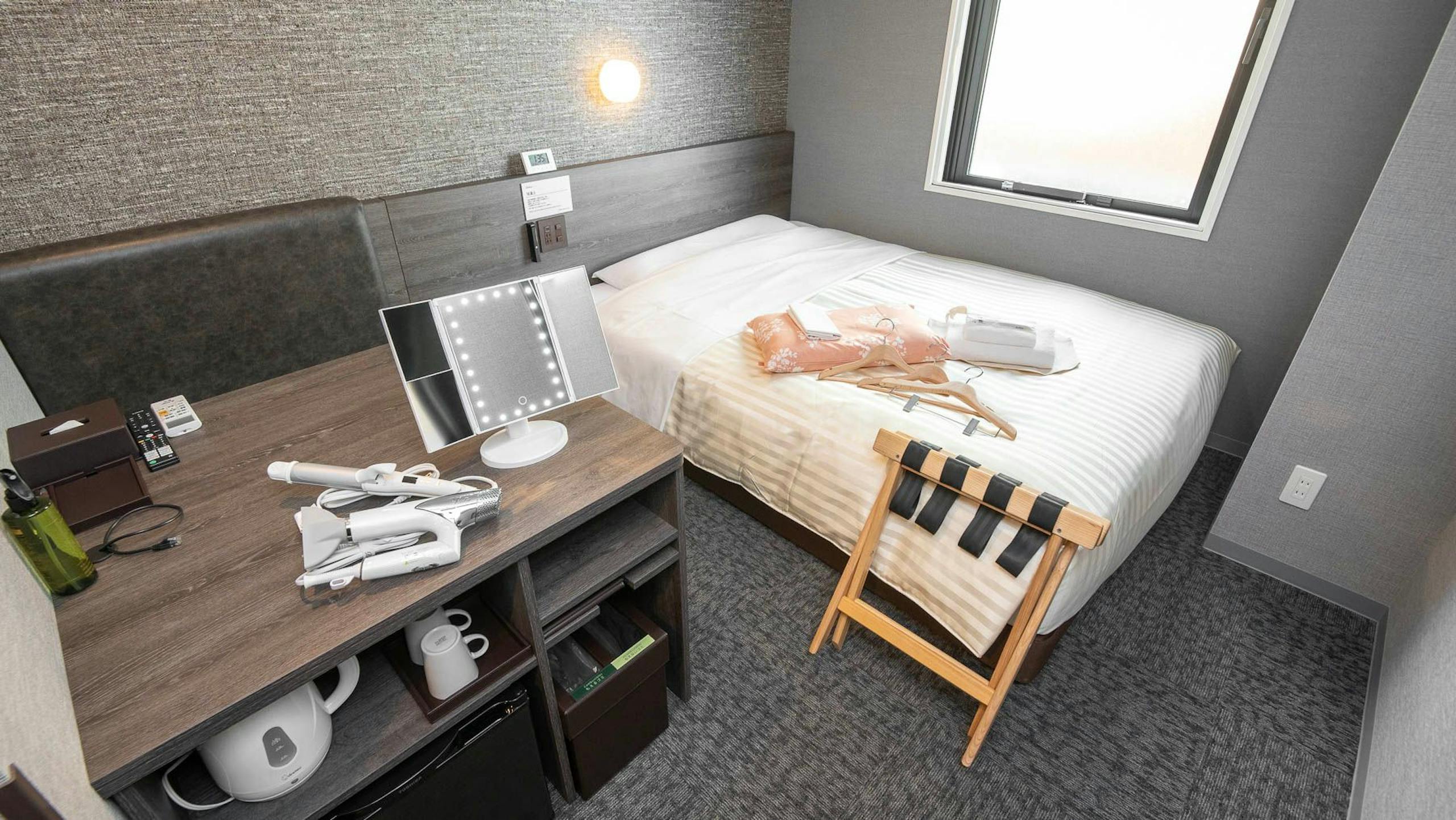 女性専用フロアにレディースルームが用意され、150cm幅ダブルベッドを設えた12㎡のお部屋に1人から2人で宿泊できます。