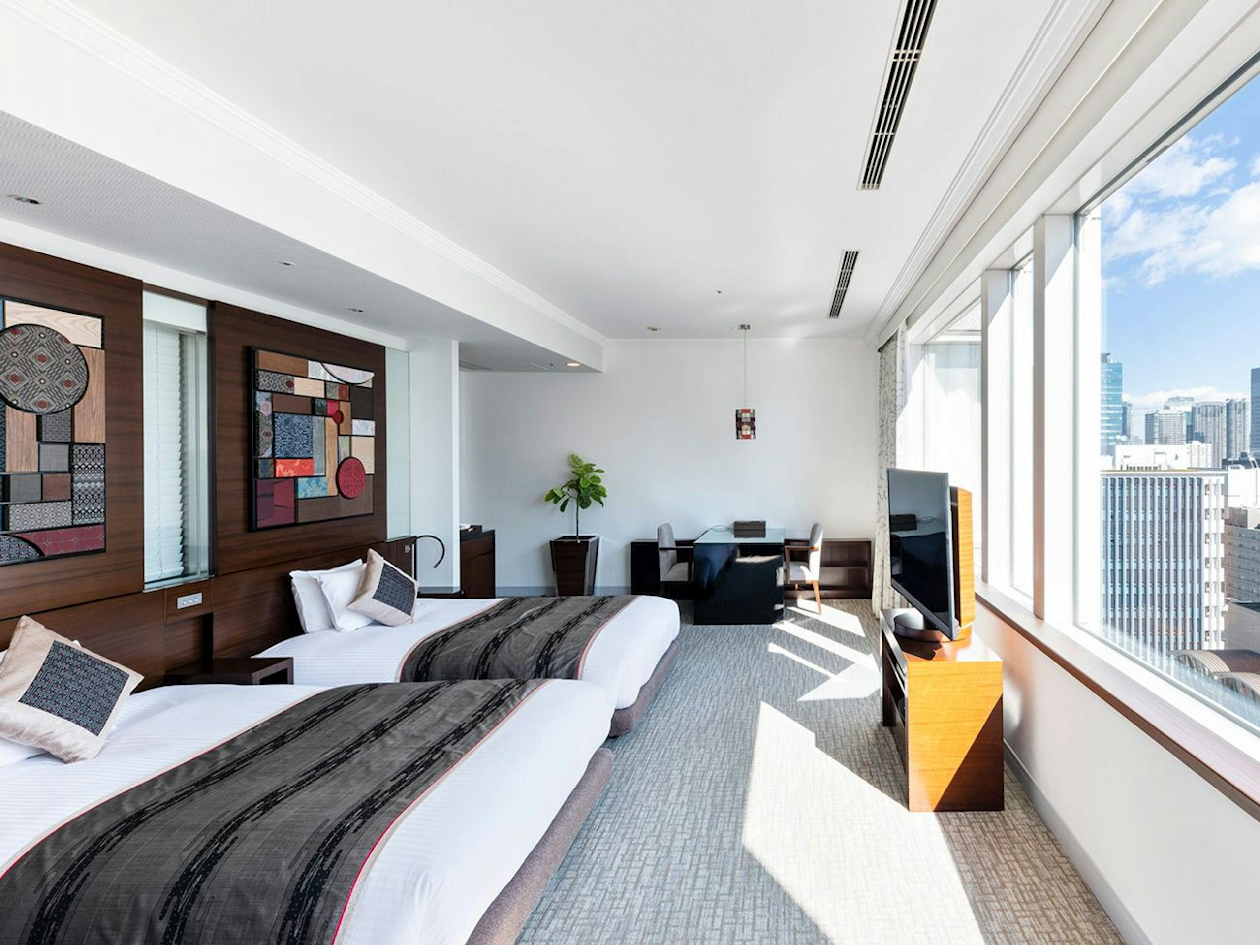 客室はトレインビューのセミダブルや汐留方面の夜景を望むスーペリアツイン、最上階に位置して二面窓のスイートなど、趣の違うお部屋から選べます。