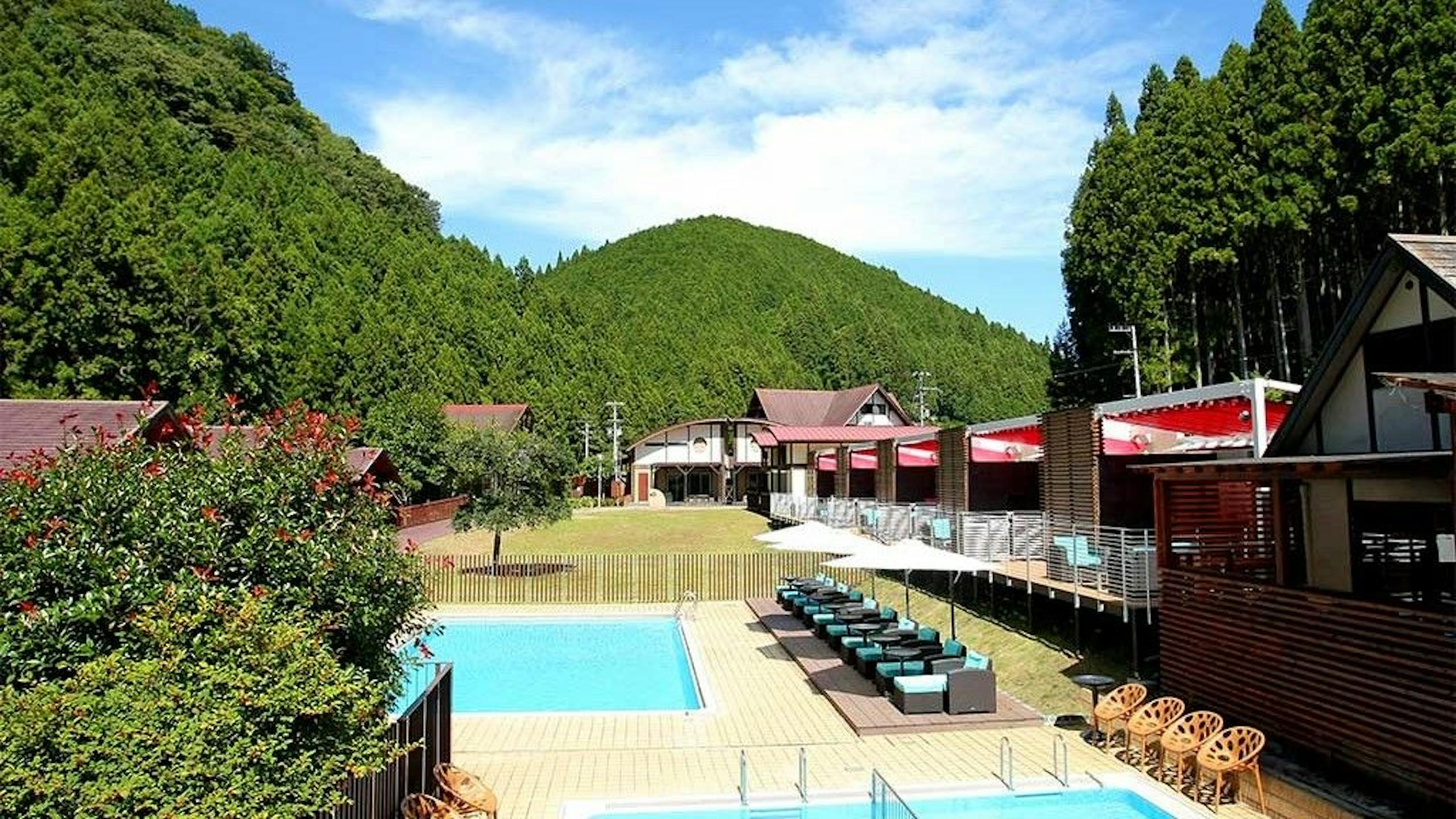 星降る里、美野町の山間に囲まれたコテージ型施設。