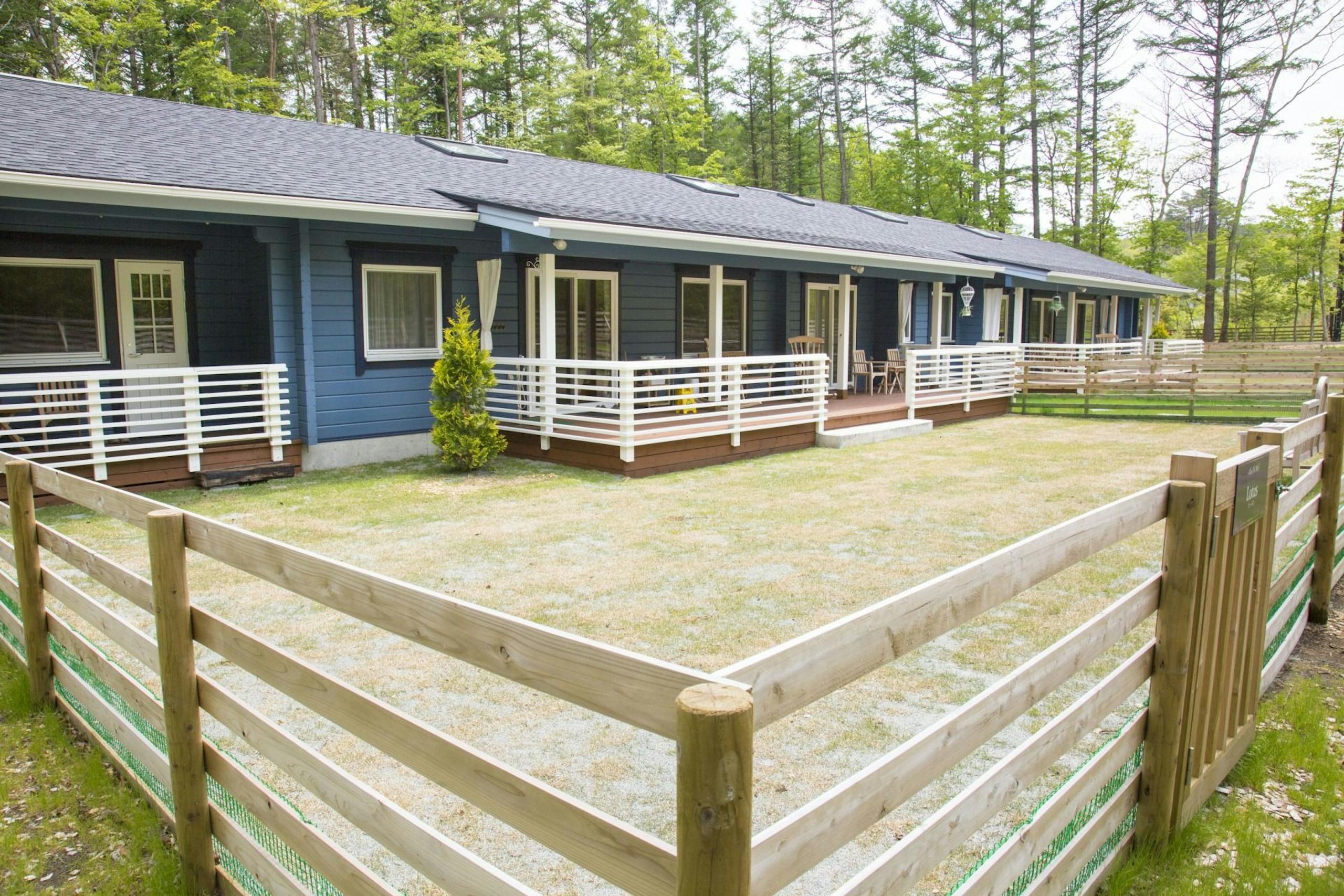 こちらには専用のお庭が付いた約250平米のプライベートドッグラン付プレミアムコテージと、ミニガーデンの2DKプライベートドッグガーデン付コテージがあります。